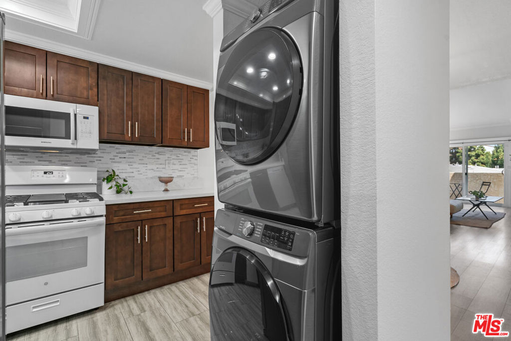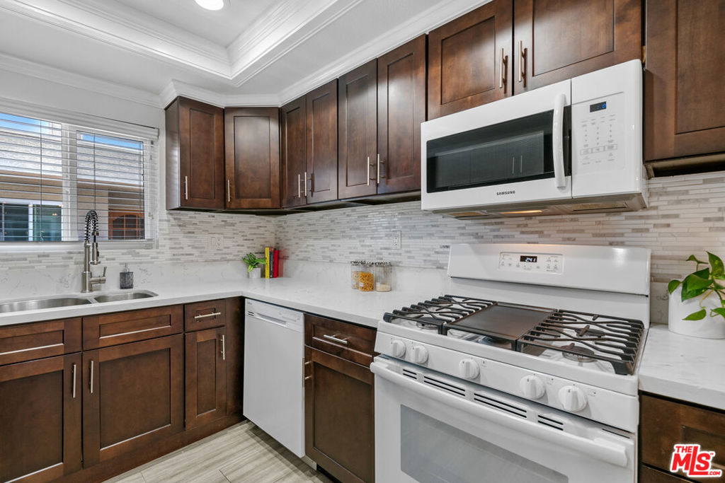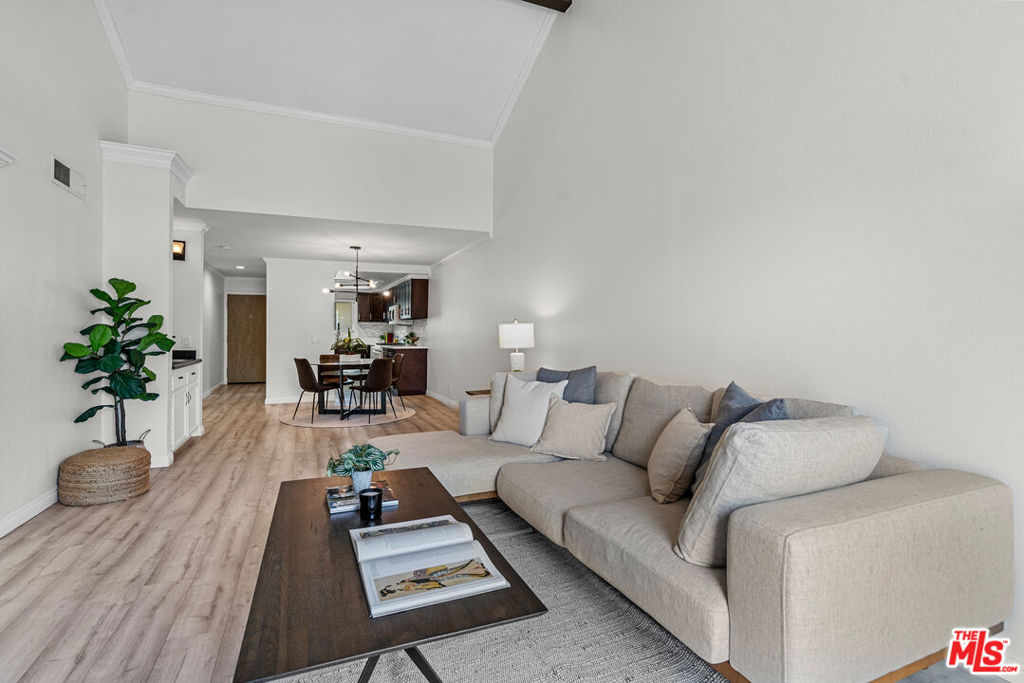 Come see this beautifully updated penthouse unit in Del Rey! This unit features two bedrooms and two bathrooms, an open floor plan, vaulted ceilings, crown molding, updated flooring, and in-unit laundry. The large primary bedroom includes a walk-in closet, ensuite bathroom, vaulted ceiling, and balcony access. The kitchen has modern stainless steel appliances, quartz countertops, and lots of cabinets. This stunning property offers peace of mind with a fully installed SimpliSafe security system, ensuring top-notch protection and convenience. Additional storage is secured and lofted in the unit, and storage closets are in the secured parking area. This unit features gated parking with the added convenience of two reserved tandem spaces, ensuring ample parking for residents. The HOA includes water, trash, building maintenance, and earthquake insurance. This location is unbeatable with easy access to the 405 and 10 freeways, public transportation, LAX, DTLA, and UCLA. Only minutes away from entertaining hot spots in Marina Del Rey, Culver City, and Venice Beach, don't miss your chance to see this beautiful home!