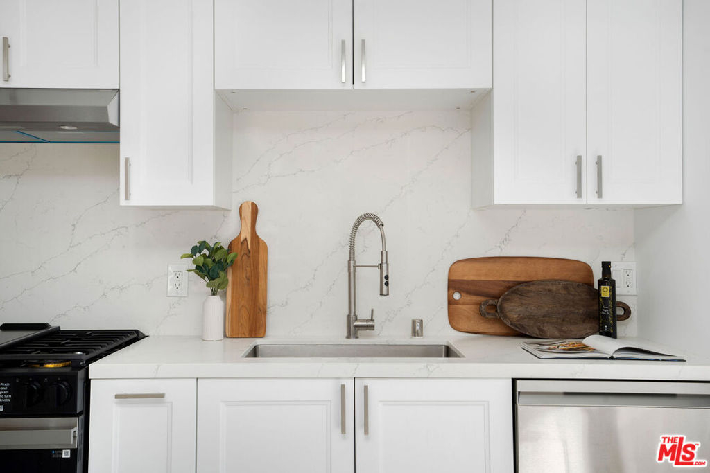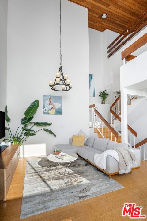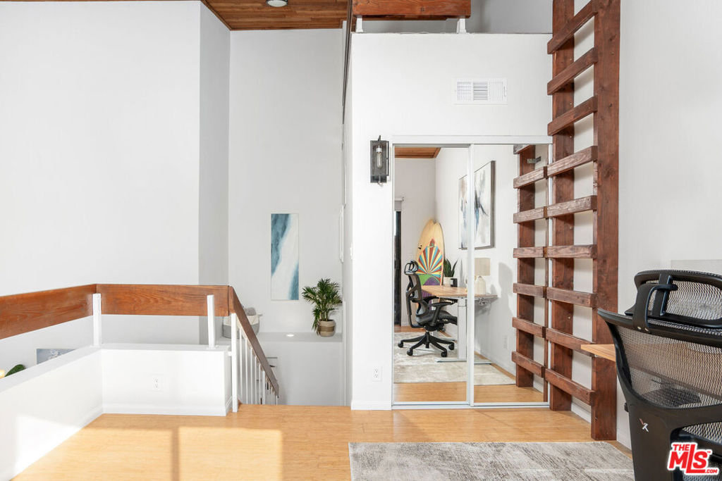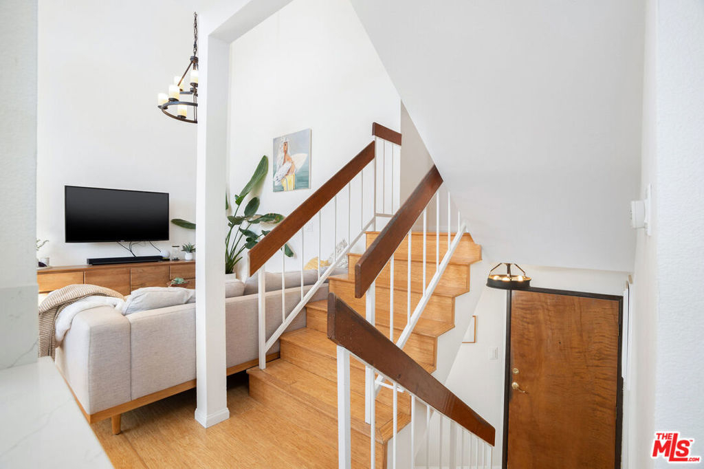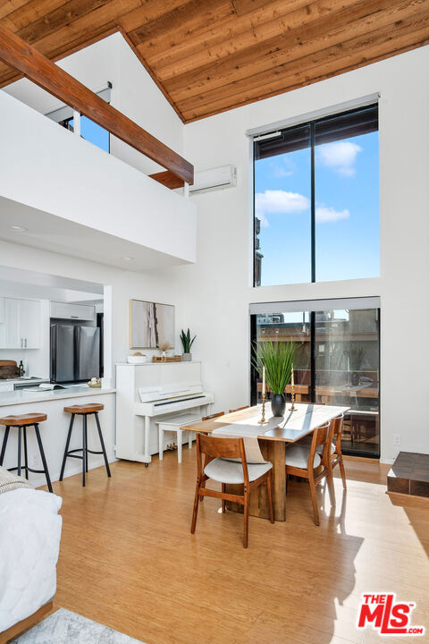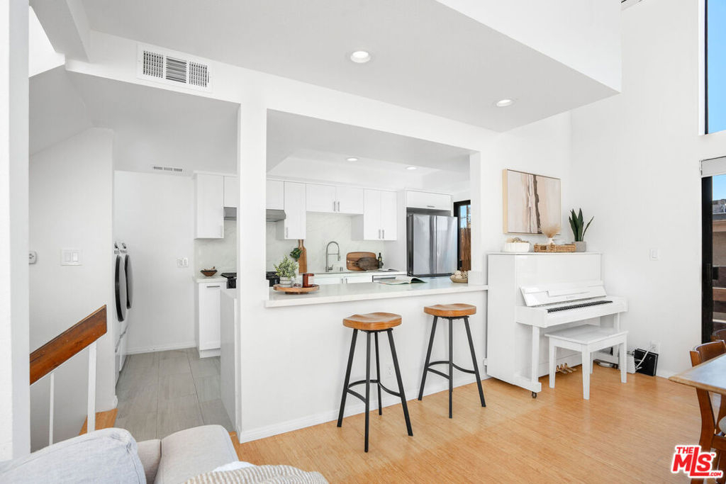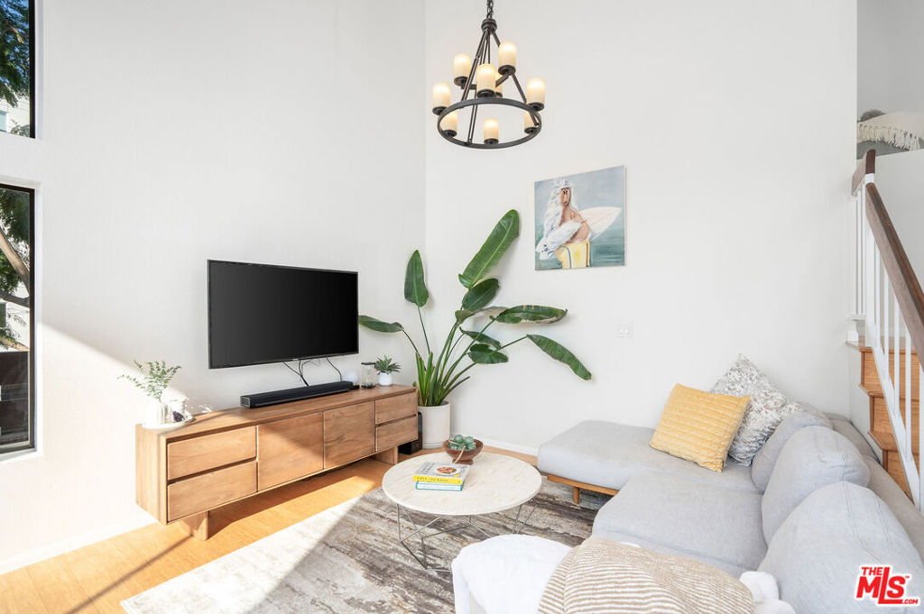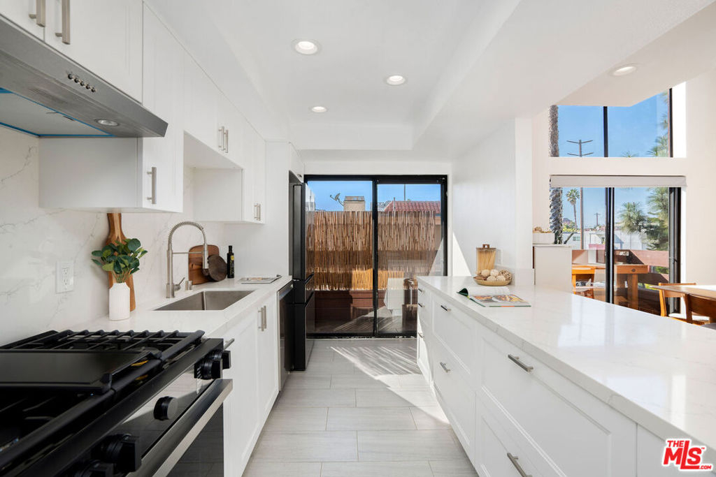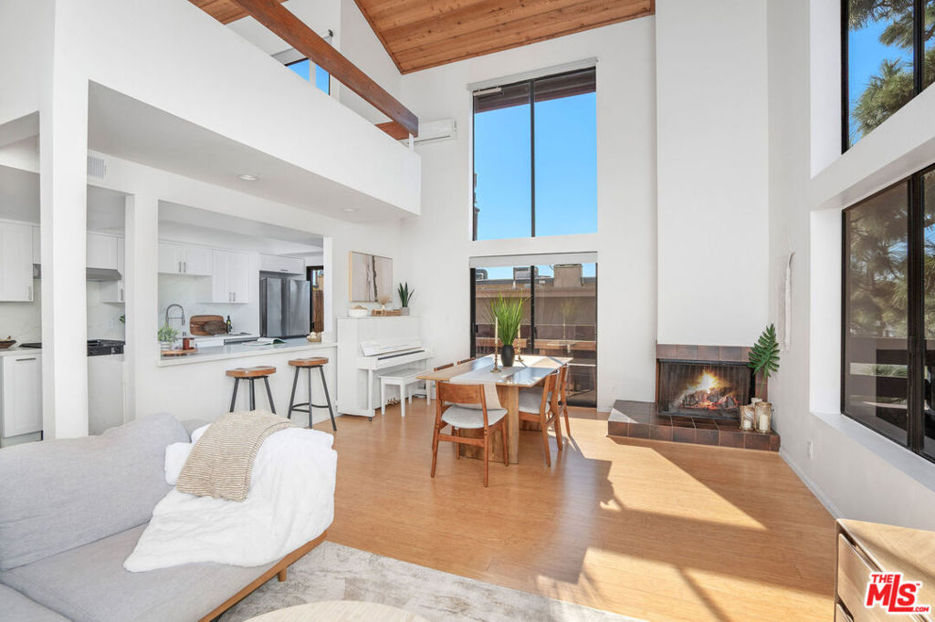 Welcome to your sun-drenched sanctuary in the heart of Mar Vista! This stunning 2-bedroom plus loft is a coveted corner unit that is a true showstopper, featuring soaring ceilings, an airy open floor plan, and two private outdoor spaces. Step inside and be wowed by the brand-new chef's kitchen, a perfect blend of modern style and functionality. A stunning waterfall-edge peninsula anchors the space, complemented by high-end stainless steel appliances and seamless flow into the living and dining areas. The dramatic living room is centered around a cozy fireplace, framed by sleek bamboo wood floors, soaring wood-paneled ceilings, and oversized floor-to-ceiling windows that flood the space with natural light and create an inviting, open atmosphere. Downstairs, the private primary suite offers a peaceful retreat with generous closet space and an en-suite bath designed for relaxation. A second spacious bedroom and a stylish full bath complete the lower level, along with additional storage tucked below the stairs. The airy loft upstairs makes for the perfect home office, 3rd bedroom, gym, or creative studio, complete with a private patio, closet, and half bath. Above, a rare fourth-level lofted space adds even more flexibility. The home also includes in-unit laundry, a private storage locker, and two dedicated parking spaces within a gated garage. This unit is walkable to Mar Vista's vibrant community, offering incredible restaurants, cafes, and shops, with close proximity to beaches. A unique blend of architectural charm and everyday convenience, this one is a must-see!