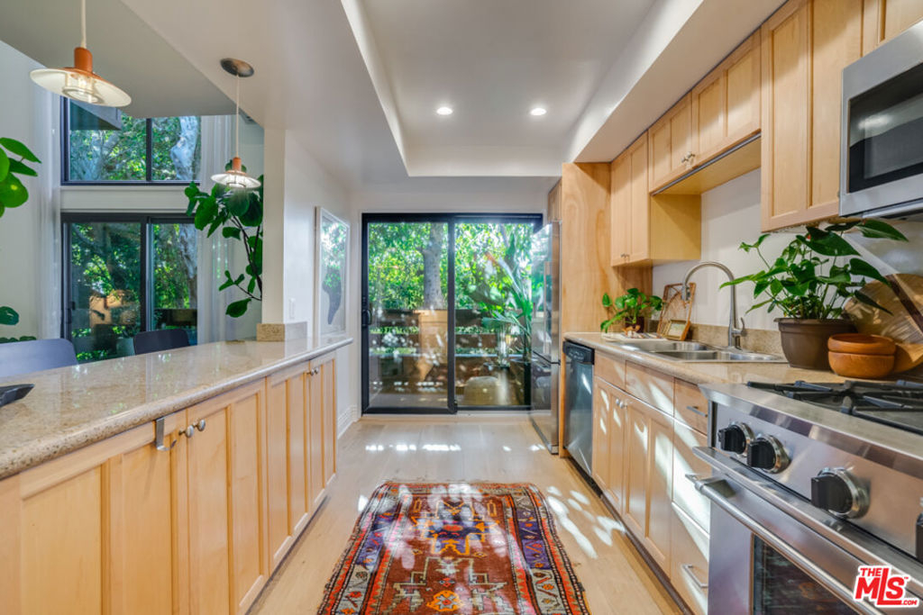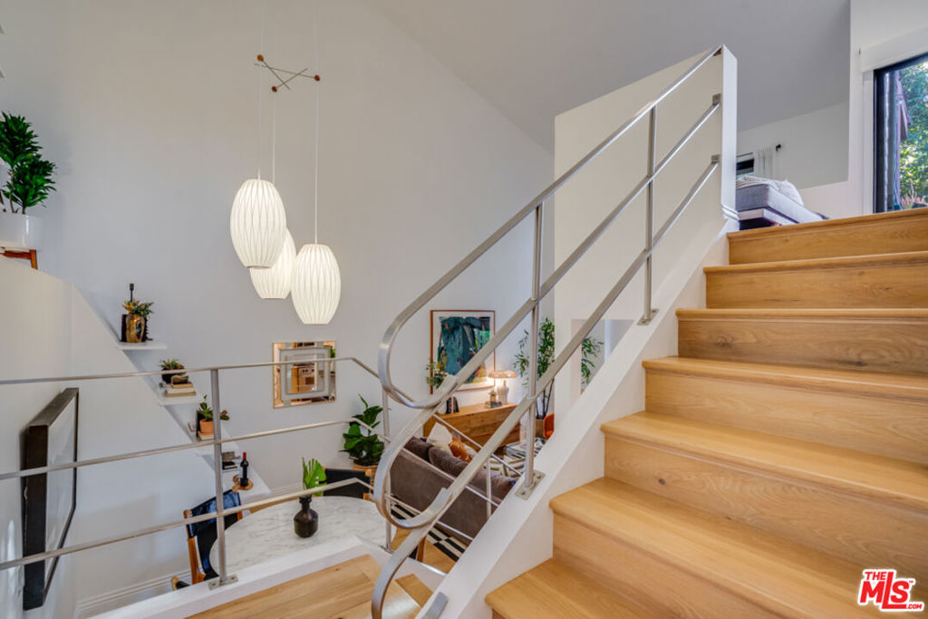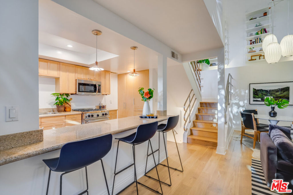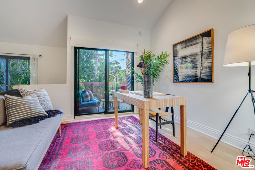 Dramatic architectural townhouse in the heart of Mar Vista. Voluminous light-filled living room with double-height ceilings, open to the gourmet kitchen, a balcony, then topped with a loft and sunny deck. Two private hedged outdoor spaces, perfect for alfresco living. Quiet primary bedroom suite downstairs with a large closet and bath with spa tub. The loft can be used as a second bedroom or office. Multiple upgrades include newer windows throughout, an EV charger in the tandem parking, custom closets, and more! Amazing location near popular eateries like Rockenwagner Bakery, Hatchet Hall, and the future Culver Public Market.