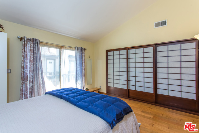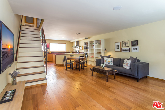 Contemporary 2 bedroom/2.5 bath townhouse in prime Mar Vista location. Inviting and warm with custom details and hardwood floors throughout. First level offers an open floor plan providing great flow between living room, dining area and kitchen. Living room features a gas fireplace with stones. Striking remodeled kitchen with stainless steel appliances, wine frig and breakfast bar. Remodeled powder room and laundry area complete the first level. Spacious master suite with vaulted ceiling, remodeled bath, a custom wardrobe closet and balcony. Second bedroom also features a vaulted ceiling and includes an en suite bathroom and walk in closet. Wired for sound system. Attic with abundance of storage space. Gated parking. Close to restaurants and shops.