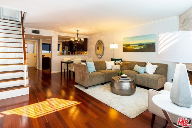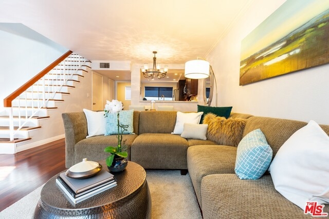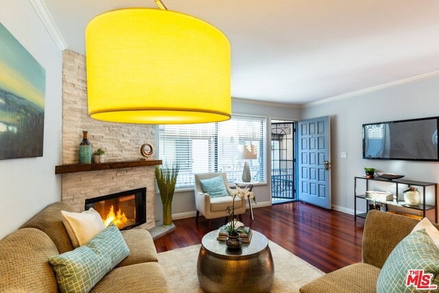 Indulge yourself in this hip, contemporary 2bed/2.5bath 2-story townhome in small complex. Gorgeous Brazilian cherrywood floors throughout. First level features a bright, inviting open floorplan living room/dining room, great for entertaining or just cozying up by the striking stone fireplace. Remodeled kitchen offers granite counters, stainless steel appliances and custom glass backsplash. Finishing off the main level is laundry room and redone powder room. Upstairs boasts two en suite bedrooms, both with vaulted ceiling and updated bathrooms. Warm color palette and designer finishes throughout. Central heat/AC with Nest technology. Massive attic level offers abundant storage space. Tandem, gated parking and storage in garage. Prime Mar Vista location, convenient to shops and restaurants, and 2 miles to the beach.