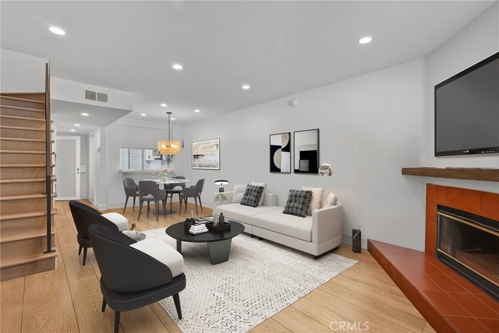 Welcome to 12711 Mitchell Ave, #5, a remodeled 2-bedroom, 1 1/2-bath townhome-style condo nestled in the highly coveted Mar Vista neighborhood, just a 10-minute bike ride from Venice. This residence is bathed in natural light and features a well-designed floor plan that enhances its spacious feel. The first floor boasts a sizable family room that flows into an open kitchen, alongside a convenient powder room. Upstairs, discover an expansive master bedroom with vaulted ceilings, picture windows, a bathroom, and a second generously sized bedroom. Located within a private, gated community, this unit has been freshly painted with new flooring throughout. It offers the convenience of two parking spaces and a low HOA fee. Enjoy its prime location near Westside shops, entertainment, and dining, combining comfort, convenience, and exceptional value.