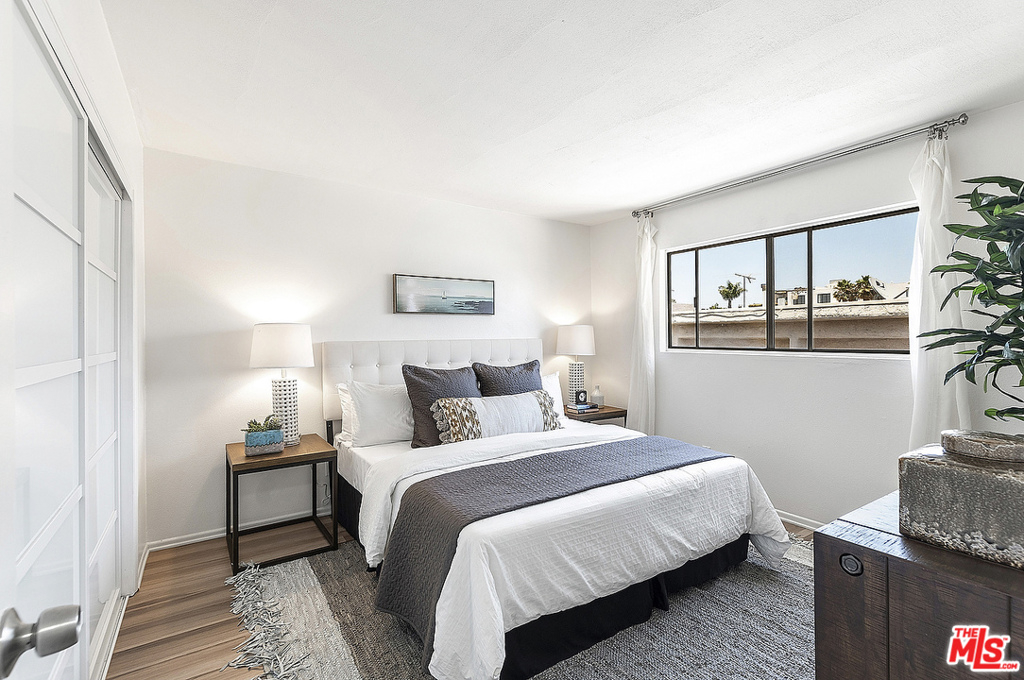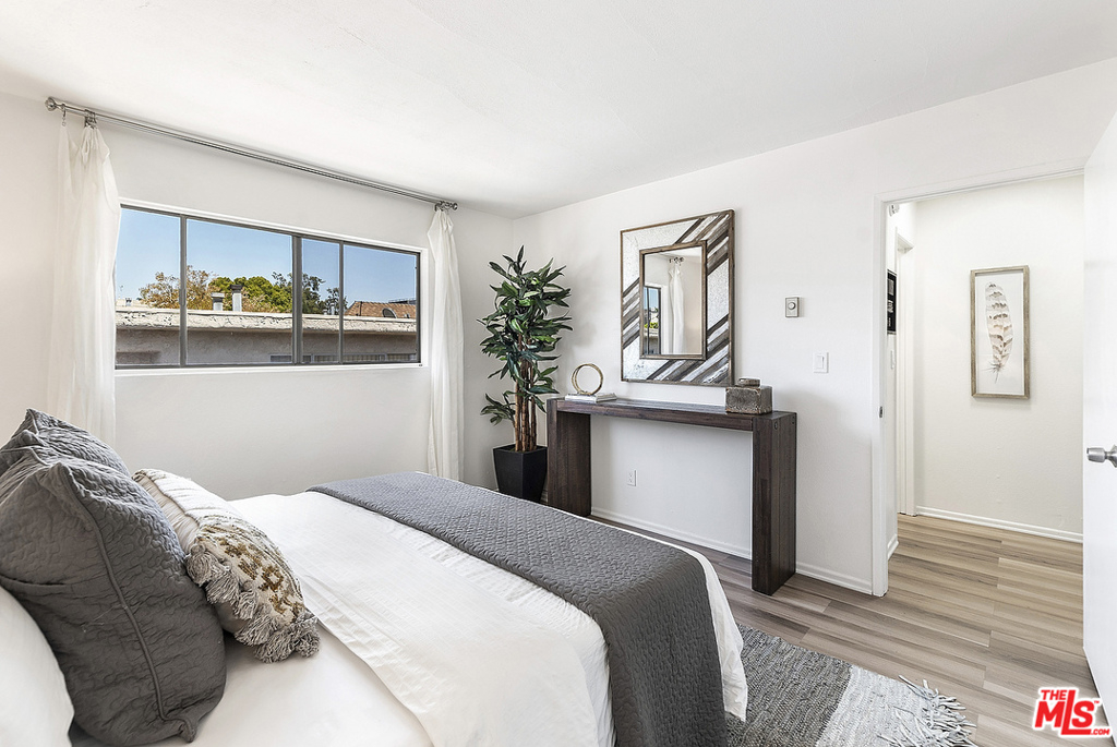 Centrally located in Mar Vista, this top floor west facing unit has ample natural light, a spacious floor plan with room for a home office, private balcony, and only one common wall. The generous master bedroom includes plenty of closet space with the potential to add a stackable washer/dryer with HOA approval. The bathroom has been recently remodeled with new vanity, mirror & light fixture. Well maintained building with lush landscaping, gated/secured entry, common areas, and just minutes from the Farmers Market and highly rated shops, restaurants, and more! Gated parking with 1 parking spot that includes extra storage. Grab your keys and go!