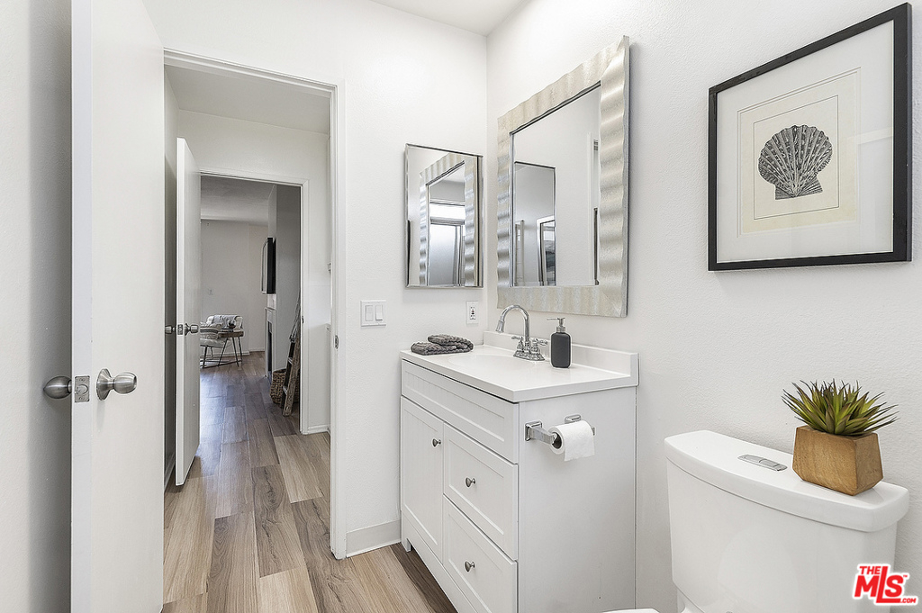 Centrally located in Mar Vista, this top floor west facing unit has ample natural light, a spacious floor plan with room for a home office, private balcony, and only one common wall. The generous master bedroom includes plenty of closet space with the potential to add a stackable washer/dryer with HOA approval. The bathroom has been recently remodeled with new vanity, mirror & light fixture. Well maintained building with lush landscaping, gated/secured entry, common areas, and just minutes from the Farmers Market and highly rated shops, restaurants, and more! Gated parking with 1 parking spot that includes extra storage. Grab your keys and go!