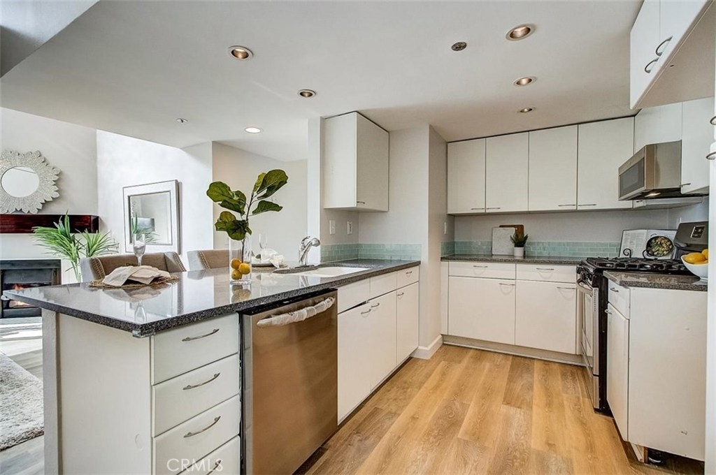 This beautiful newly remodeled condo, situated in one of the most desirable areas of Mar Vista, is ready for its new owners. In this home, you can watch the sunrise from your home office in the upstairs loft and the sunset from the excellent view from your balcony. Enter into the spacious and open living room with high ceilings, hardwood flooring, and a cozy fireplace. The living room opens with large sliding doors to an extended balcony with incredible sunset views. The kitchen flows seamlessly from the living room and impresses with upgraded granite countertops and fresh white cabinets. Down the hallway are the primary bedroom and the bathroom ensuite. This serene and spacious bedroom has modern color tones and opens with large sliding doors to a spacious balcony. The ensuite bathroom impresses with beautiful vanity and countertops. On the other end of the unit is the spacious secondary bedroom which has double closets and right across from the main full bathroom. Other great features include in-unit laundry, central cooling/heat and up the stairs, you will find a spacious loft area with a skylight that provides wonderful natural light. The complex amenities include a gym/fitness center, two tandem parking spaces, pet-friendly complex, a storage unit, and 4 guest parking spaces. Close to shopping, dining, Abbots & Kinney, Silicon Beach, and many amazing community desires. Don't let this gem get away!