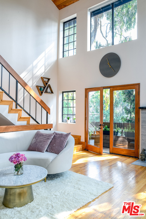 Spacious 3 bedroom, 3.5 bath townhouse in the heart of Mar Vista. This rare offering is highlighted by a stunning great room that features soaring 20 foot wood planked ceilings with southern exposure that bathes the unit in natural light through expansive windows and French doors. The massive kitchen was recently upgraded with new countertops, a new backsplash, and stainless steel appliances, all while opening to the dining and living spaces to create the perfect entertaining flow. Upstairs you will find the lofted primary bedroom that enjoys treetop views through walls of glass and is complete with a large walk-in closet, spacious ensuite bathroom, and a bonus space that is a perfect remote office. Downstairs you will find two ample bedrooms, each with their own ensuite bathrooms. Other features include a laundry room, highly coveted side by side garage parking, extra storage in the garage, a new water heater, custom electric blinds, two balconies, and a nest system among many others