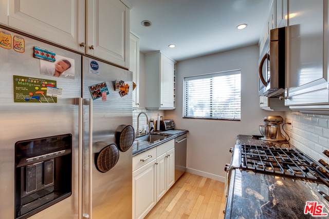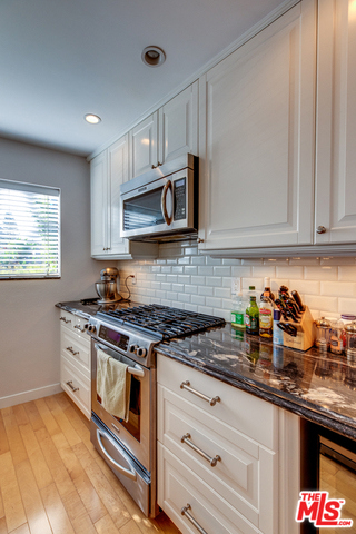 This Mar Vista west facing end unit features an open floor plan filled with natural light and ocean breezes. The property has recessed lighting, hardwood floors, travertine wood fireplace, shutters, in unit washer/dryer, and a balcony. The remodeled kitchen has subway tiles, stainless steel appliances, granite counter tops, large pantry and a built-in wine cooler. The beautiful master bedroom has a walk-in closet and remodeled master bathroom with a jet tub. There is a large spacious storage unit in the garage with two parking spaces located close to unit. Located minutes away from Venice Beach, close to LAX, UCLA, shops, and restaurants.