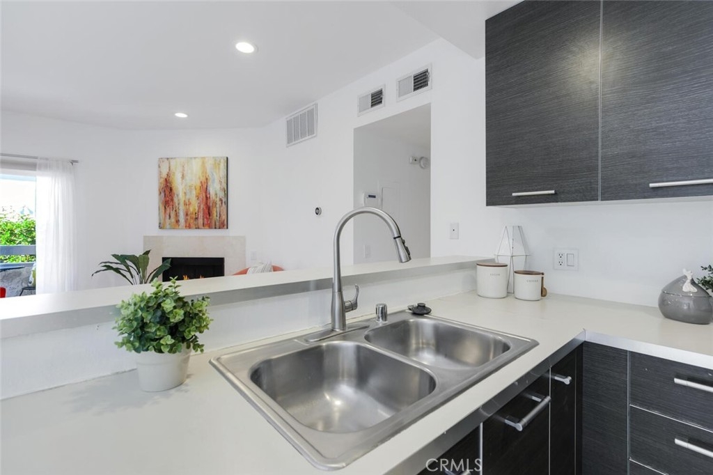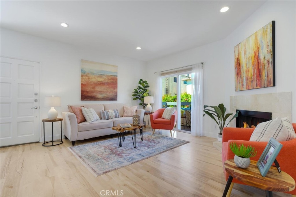 Beautiful and bright corner unit with private balcony! This exceptional condo is located on a quiet residential cul-de-sac in sought after Del Rey neighborhood west of 405 FWY. Positioned at the back of the development, this unit features an open concept living and dining area perfect for entertaining, with charming touches that include a gas fireplace, wood floors throughout and balcony with lush tree top views. The large open Kitchen has great counter space, sleek charcoal-colored cabinets, stone floors, and stainless-steel appliances for all your cooking needs. The spacious, ensuite Primary Bedroom has a private Full Bathroom and two separate wardrobe closets. The Guest Bedroom offers a bright space with Full Guest Bathroom and In-Unit Laundry steps away. There are smooth ceilings in all rooms and upgraded LED lighting in main living area. Property is gated with secure garage featuring two car tandem parking. This Move-In ready unit is located near trendy cafes, popular dining options and easy access to the bike path, the Marina Harbor, Venice, Culver City, Playa Vista, the beach, freeways, and LAX.