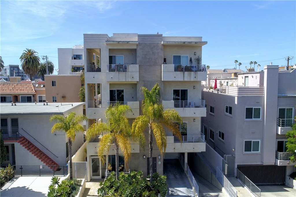 With a welcoming open layout and tons of natural light, this nearly 1500 SF spacious and well maintained 3 bedroom 2 ½ bath third-floor condo features lovely treetop/city views and year-round ocean breezes. Enjoy wood floors throughout, central HVAC, an elegant smokeless fireplace, double pane windows, and a spacious wraparound patio/balcony. The open kitchen has plenty of storage, granite countertops, stainless steel appliances and huge walk in pantry/utility closet for lots of storage. Balconies off both the master and living room offer fresh air and beautiful views. The spacious master suite has a large walk-in closet and well appointed bathroom with newly tiled shower and large soaking tub. Two nicely sized additional bedrooms each have large closets. One full bathroom serves the 2 bedrooms while a half bath is perfect for guests. In-unit laundry, secure entry building, and two tandem parking spots in the gated garage, along with additional storage cabinets. Communal roof deck offers incredible 360 degree views.