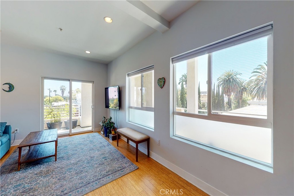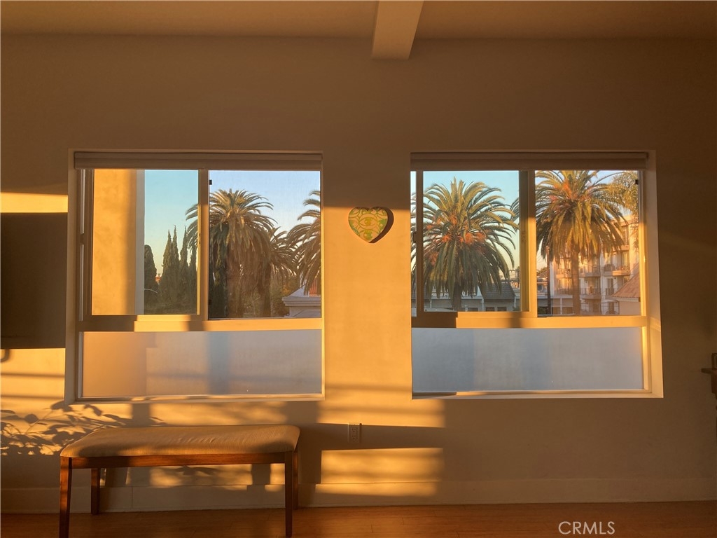With a welcoming open layout and tons of natural light, this nearly 1500 SF spacious and well maintained 3 bedroom 2 ½ bath third-floor condo features lovely treetop/city views and year-round ocean breezes. Enjoy wood floors throughout, central HVAC, an elegant smokeless fireplace, double pane windows, and a spacious wraparound patio/balcony. The open kitchen has plenty of storage, granite countertops, stainless steel appliances and huge walk in pantry/utility closet for lots of storage. Balconies off both the master and living room offer fresh air and beautiful views. The spacious master suite has a large walk-in closet and well appointed bathroom with newly tiled shower and large soaking tub. Two nicely sized additional bedrooms each have large closets. One full bathroom serves the 2 bedrooms while a half bath is perfect for guests. In-unit laundry, secure entry building, and two tandem parking spots in the gated garage, along with additional storage cabinets. Communal roof deck offers incredible 360 degree views.