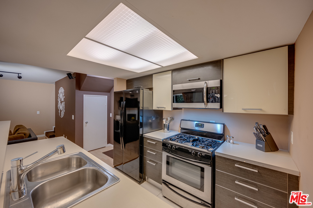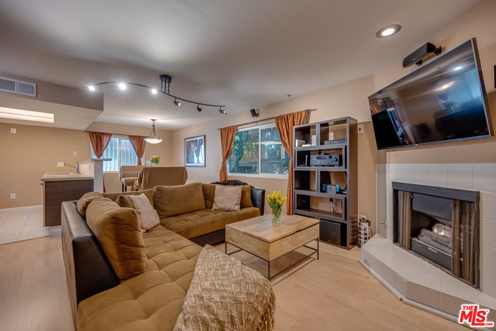 Lowest priced 2 bd/2b west of the 405. Lovely Mar Vista townhome is a 2 story corner unit in pristine condition that enjoys immense privacy and an Entertainers floor plan. Inside, the open concept living area features a corner fireplace, picture windows and dining area. The well appointed kitchen has a touchscreen Kenmore refrigerator, 4 burner Frigidaire range, double stainless steel sink and breakfast bar. Upstairs, the master suite boasts a private balcony, ceiling fan and ensuite bath with floor-to-ceiling tiling and whirlpool tub. A spacious guest room has a large closet, ceiling fan and picture window looking out at lush greenery, while the upgraded guest bathroom features a vanity and standing shower. Additional features include combination washer/dryer machine hookups, nest thermostat and August Lock system. Enjoy everything this sought-after neighborhood has to offer.