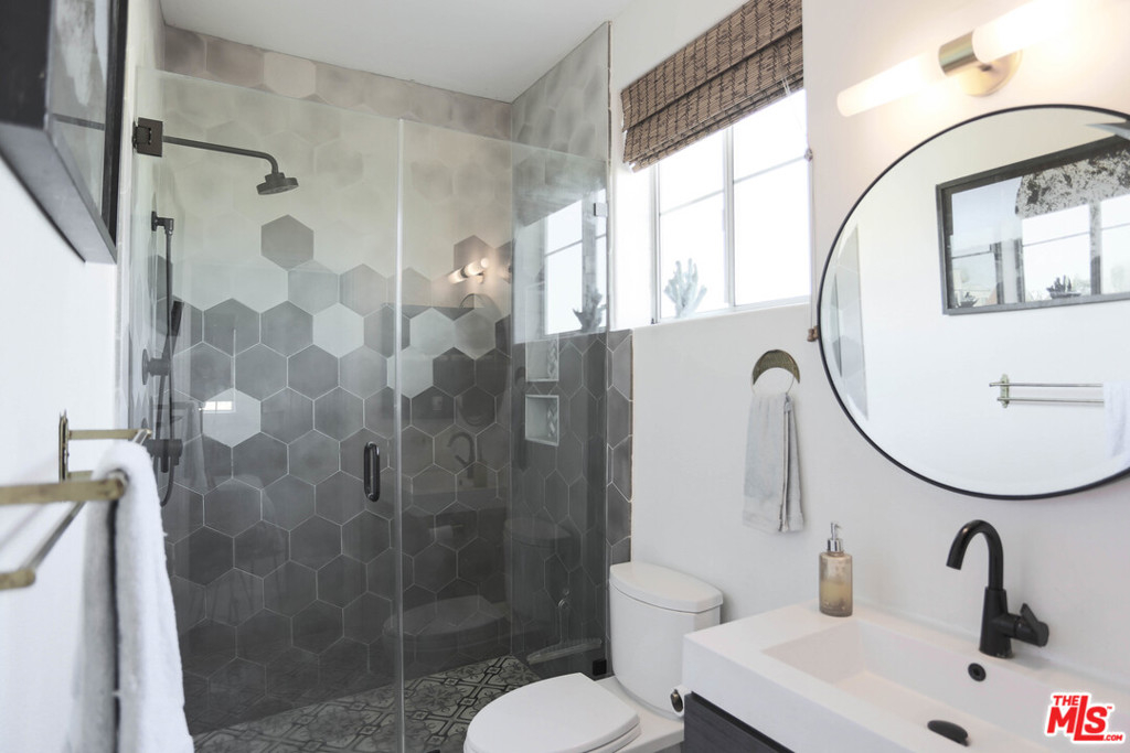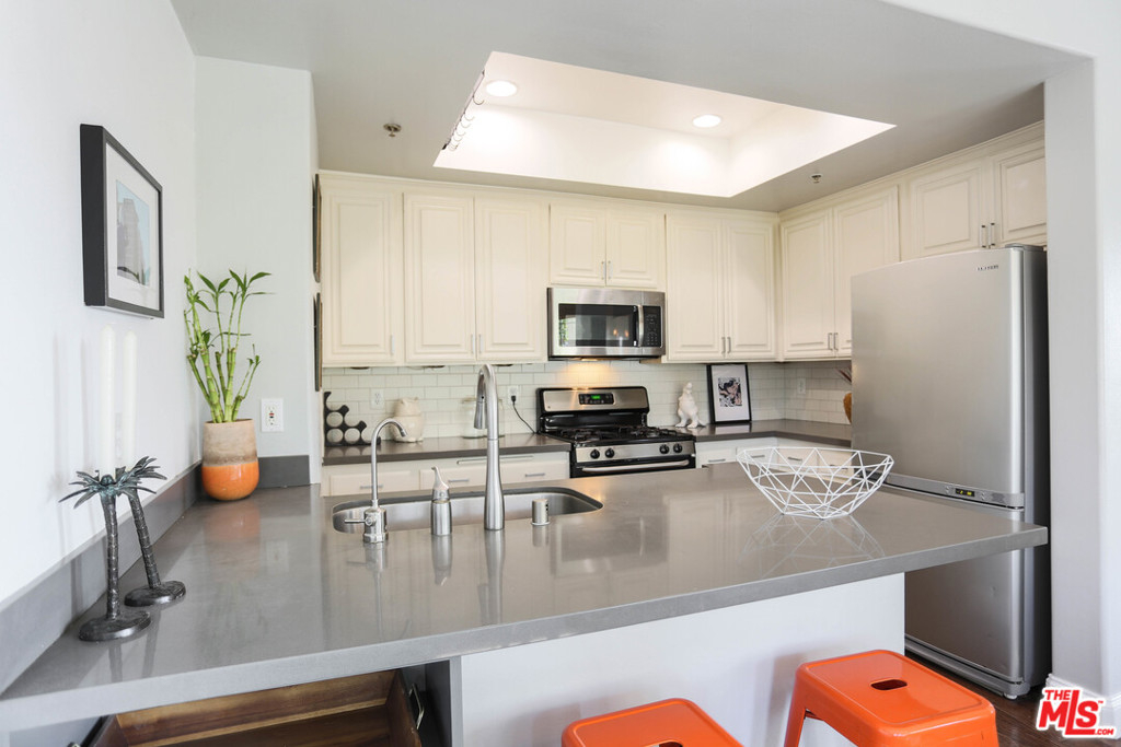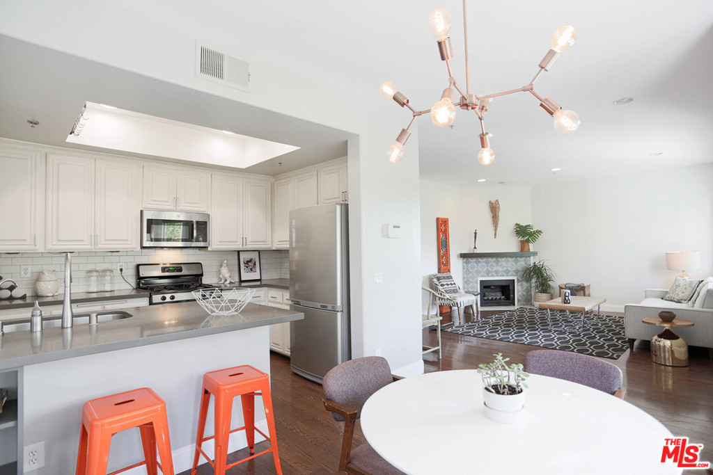 Turnkey 2 bedroom 2 bathroom condo in a 6 unit gated building located in the heart of Mar Vista with low HOA dues! Step inside to find an open and spacious living room with custom tiled fireplace and hardwood floors. The kitchen features stone countertops, tiled backsplash, stainless steel appliances, and opens to the dining and living areas. The main bedroom suite features a private balcony, walk in closet, and a beautifully remodeled bathroom with artisan cement tiles from Cle Tile and Brizo Odin shower. The second bedroom features a separate area with built ins that can be used as a home office or den. Laundry hooks are inside the unit. 2 parking spaces (tandem) in gated underground garage. Conveniently and centrally located with easy access to the beach, shopping, dining, and freeways!