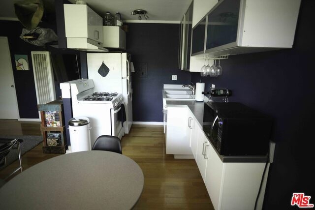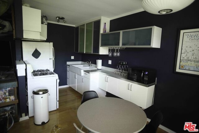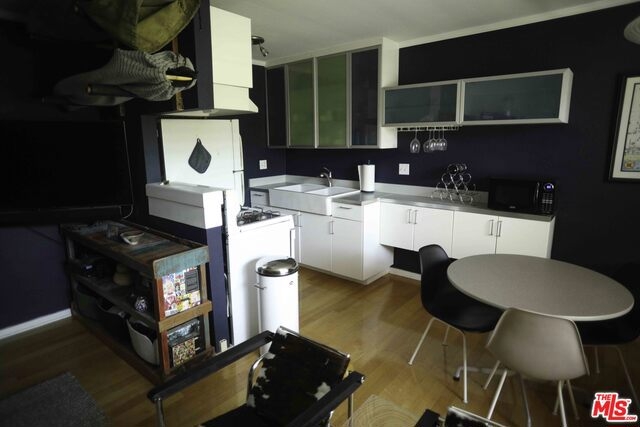 This is the perfect condo to start with or trade down for empty nesters! Probably the lowest price for a nicely remodeled one bedroom with wood floors, updated kitchen and bath, large living room and spacious bedroom and bath. Nice ceiling fans and good space for smaller square footage. Nice location in pretty complex. Close to all kinds of new restaurants, the beach, the bike path, transportation and everything new going up in Culver City and Mar Vista, Marina del Rey! Kitchen has very nice cabinets, nice wood floors, and very good layout. Nicely upgraded bathroom and good size bedroom with ceiling fan! HOA includes most all utilities. Everything on one meter. Owner will leave portable air conditioning unit that works great during those hot summer days! And one of the best features...2 tandem parking spaces, one covered! Unheard of for a one bedroom.