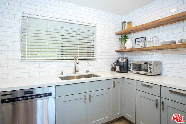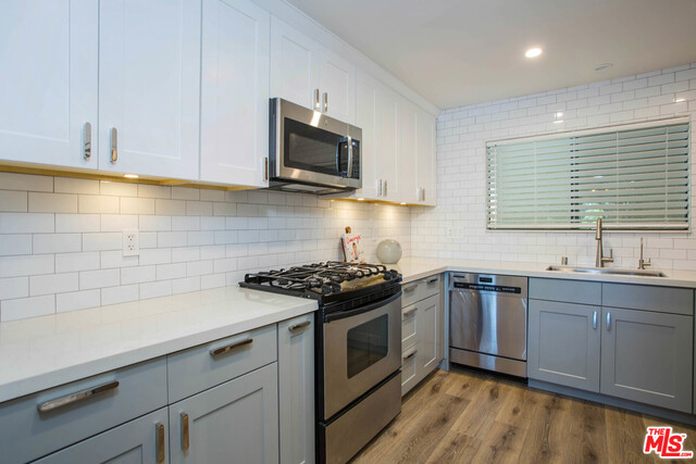 Spacious & spotless 2 bed/2 bath in a highly desirable pocket of Mar Vista. Just a short walk to shops, restaurants, & Sunday farmers market on Venice. This contemporary condo includes 2 separate outdoor spaces. Lounge, BBQ, & entertain on the sizable balcony & the private terrace. Inside you'll find new flooring & LED overhead lighting throughout. A modern living room (wired for 7.1 surround sound) opens up to the dining area - ideal for entertaining. The elegant remodeled kitchen includes new cabinets, Quartz countertops, full-sized W/D tucked away, & custom reclaimed wood shelving. Good-sized bedrooms & baths, ample closet space inside unit plus storage in the garage & balcony closets. West facing unit captures tons of natural light. Central Heat / AC controlled by Ecobee to keep you comfortable. Includes underground parking for 2 cars plus guest parking. This is a well maintained building w/ good reserves, EQ insurance, in the highly-rated Mar Vista Elementary School district.