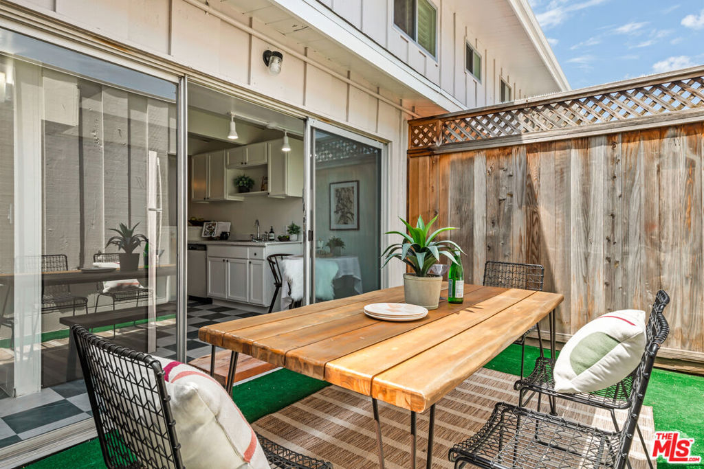 Welcome home to this lovingly updated and sun-filled townhome in the friendly and vibrant community of Mar Vista. Inside, you'll find a bright and welcoming space designed for both comfort and everyday living. The open living and dining area is ideal for relaxing, gathering, or entertaining, while the thoughtfully refreshed kitchen features granite countertops and all-new stainless steel appliances, combining both style and practicality for home cooking. Upstairs, the bedrooms provide plenty of space and storage, with the primary bedroom offering a cozy loft nook. Flooded with natural light, this home is sunny and uplifting throughout, making it a fabulous starter home or the perfect pied-a-terre. Step outside to your fabulous private patio, a serene retreat perfect for dining al fresco, soaking up the sunshine, and enjoying ocean breezes. From the patio, you also have direct access to the covered parking area. The home further boasts charming beamed ceilings, in-unit laundry, and a convenient powder room off the kitchen. The building itself is highly desired and beautifully maintained, nestled in an unbeatable location. Community amenities include a gated front courtyard adorned with lush greenery and florals, a private, gated community garage with storage, plus a sparkling pool and spa that provide a relaxing space to unwind. Low HOA dues make this home even more appealing. Just two blocks from the lively Mar Vista Farmers Market, you'll be surrounded by some of the area's most beloved eateries, including Hatchet Hall, Old Man Bar, Lodge Bread, and Menotti's. This Westside neighborhood is one of Los Angeles' most desirable, offering the perfect blend of beach-town charm and city convenience.