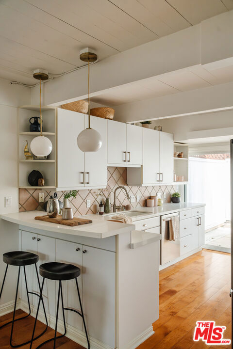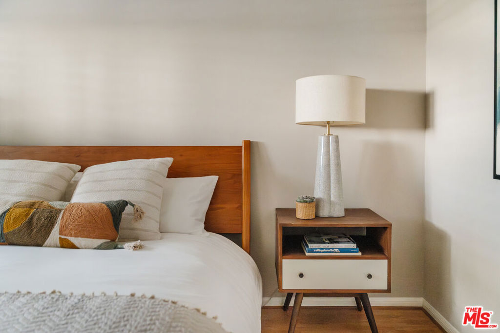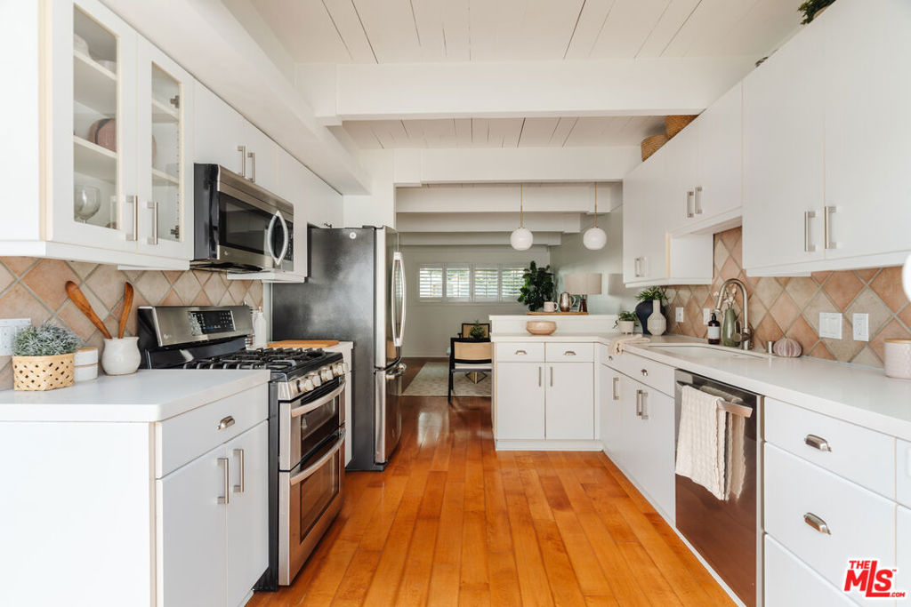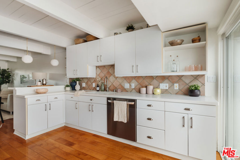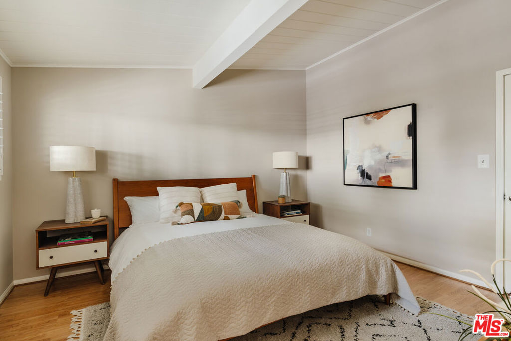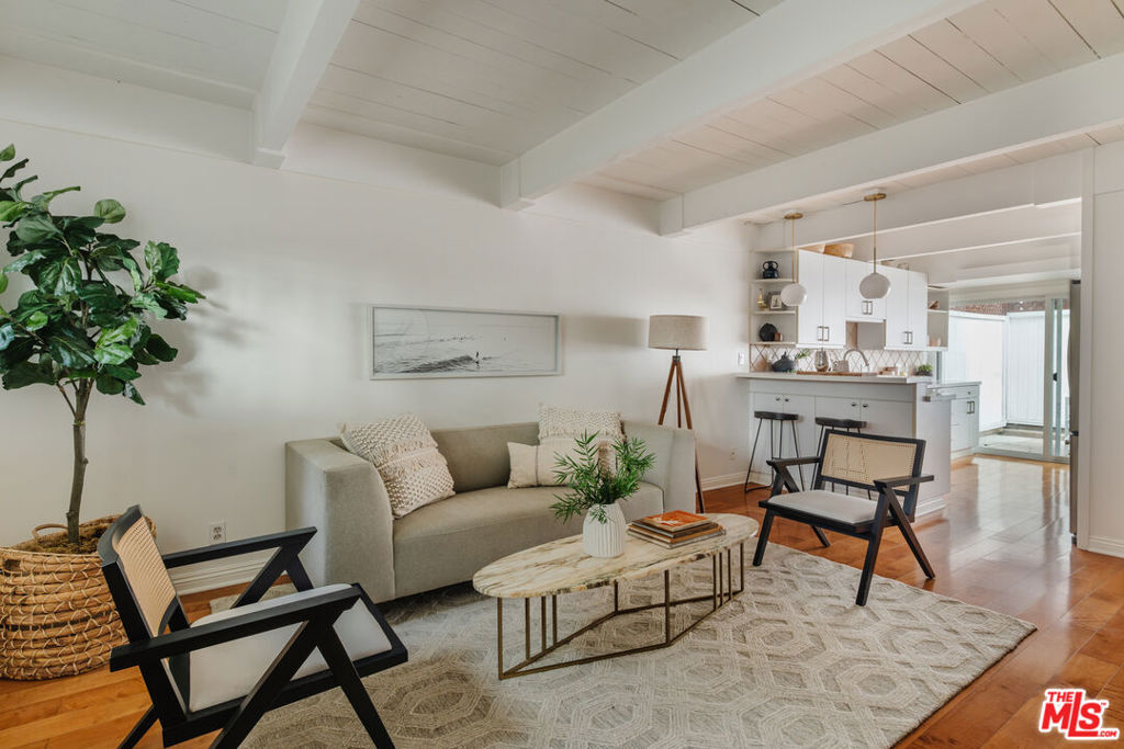 Discover this charming townhouse in the heart of Mar Vista on lush grounds with a large pool and spa. This home has the perfect blend of comfort and style in this delightful two bedroom, one and a half bath offering cheerful living space. Step inside to find a freshly repainted living room with beautiful exposed beams that radiates warmth the moment you walk through the door. The layout flows effortlessly from a cozy living room into the inviting kitchen, where generous counter space accommodates your cooking needs and bar stool seating creates a casual dining spot. Just around the corner, you'll find a discreetly tucked-away washer/dryer and an adjacent half bath for added convenience. Just off the kitchen is a large private outdoor patio perfect for dining al fresco or quiet moments in the warm California sun. Upstairs, vaulted ceilings and abundant natural light create an airy ambiance in two generously sized bedrooms. A full bathroom on this level adds convenience, and the recently replaced water heater along with a new electrical panel in 2022 contribute to the home's overall efficiency.Two parking spots are included, one reserved space equipped with an electric charger, plus access to a gated visitor parking area, ensuring hassle free city living. Above the assigned spot, additional locked storage provides a secure place for your belongings. Take advantage of on site amenities like a heated pool and a spa, ideal for relaxing moments any time of the year.Located just two blocks from the vibrant Mar Vista Farmers Market, this home places you steps away from an array of popular eateries, including the Michelin starred Hatchet Hall, Old Man Bar, Alibi, Corner Door, Menottis, and 301 Cafe. The iconic Venice sign is only a short 10 minute drive away, allowing easy access to the best of the Westside. Friendly neighbors and a tranquil atmosphere make this townhouse a true urban oasis and don't miss your chance to call it home.