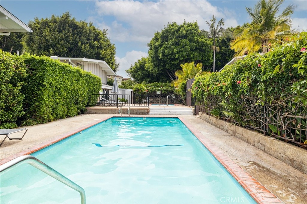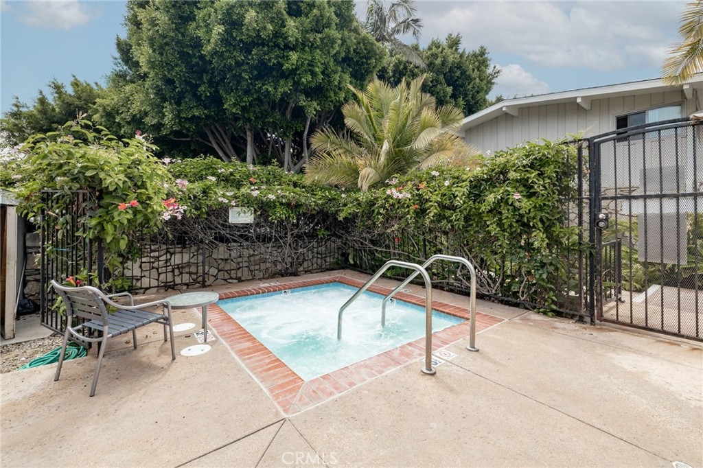 Located in the highly desirable Mar Vista neighborhood merely minutes from the beach, this private gated property boasts gorgeous tropical landscaping, a pool and spa. Once inside, enter into an open floor plan featuring a living area, dining space, full-appliance kitchen, and floor to ceiling windows that open to a private outdoor patio. The main floor also has a bathroom and separate laundry area. Upstairs are two bedrooms and a full bathroom. Ample storage and closet space throughout. Conveniently, there is a gated designated covered parking spot and a guest parking spot. As a huge perk, this is one of the only units to have private access from your designated parking spot directly into your home. Very easy to rent at a good rate with instant profitable returns, this home is also an amazing investment opportunity.