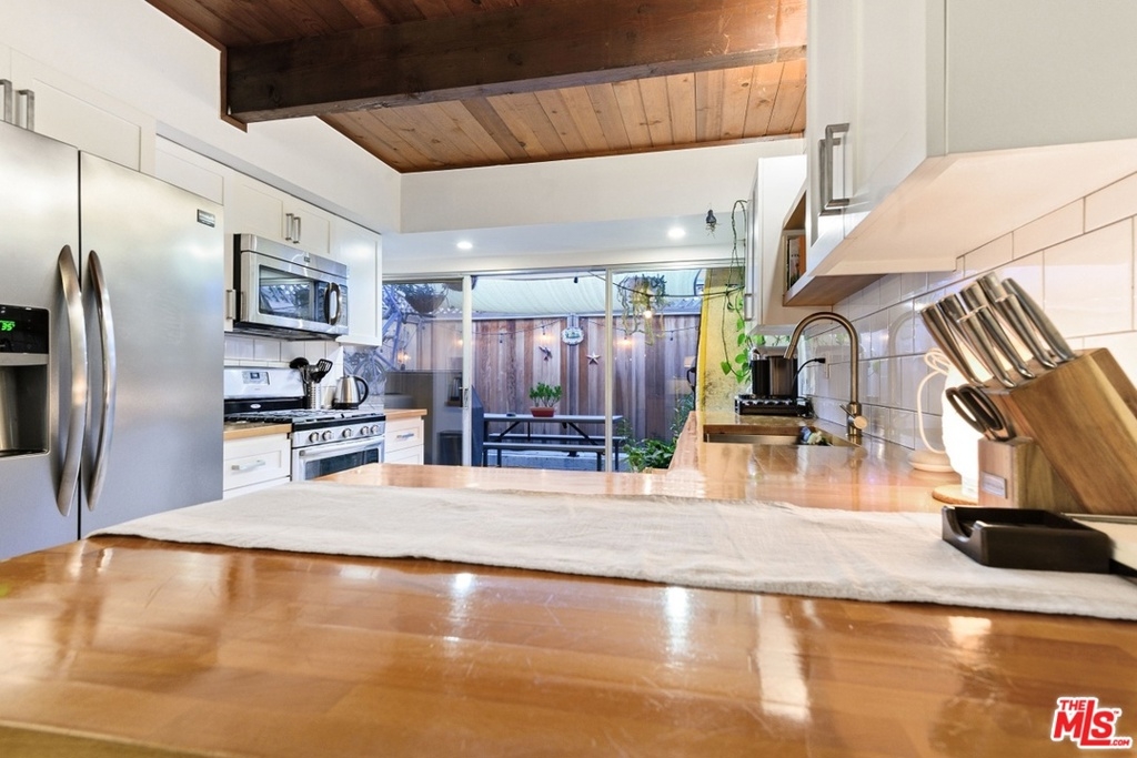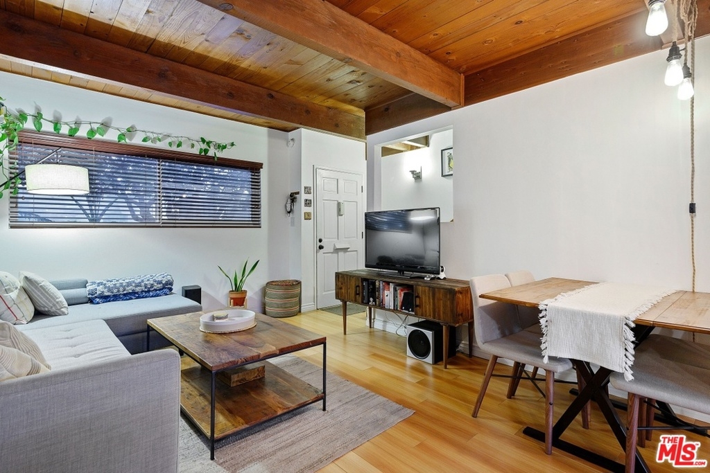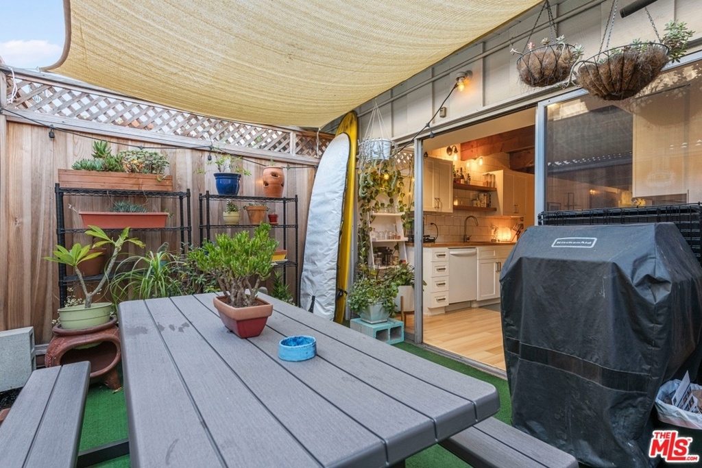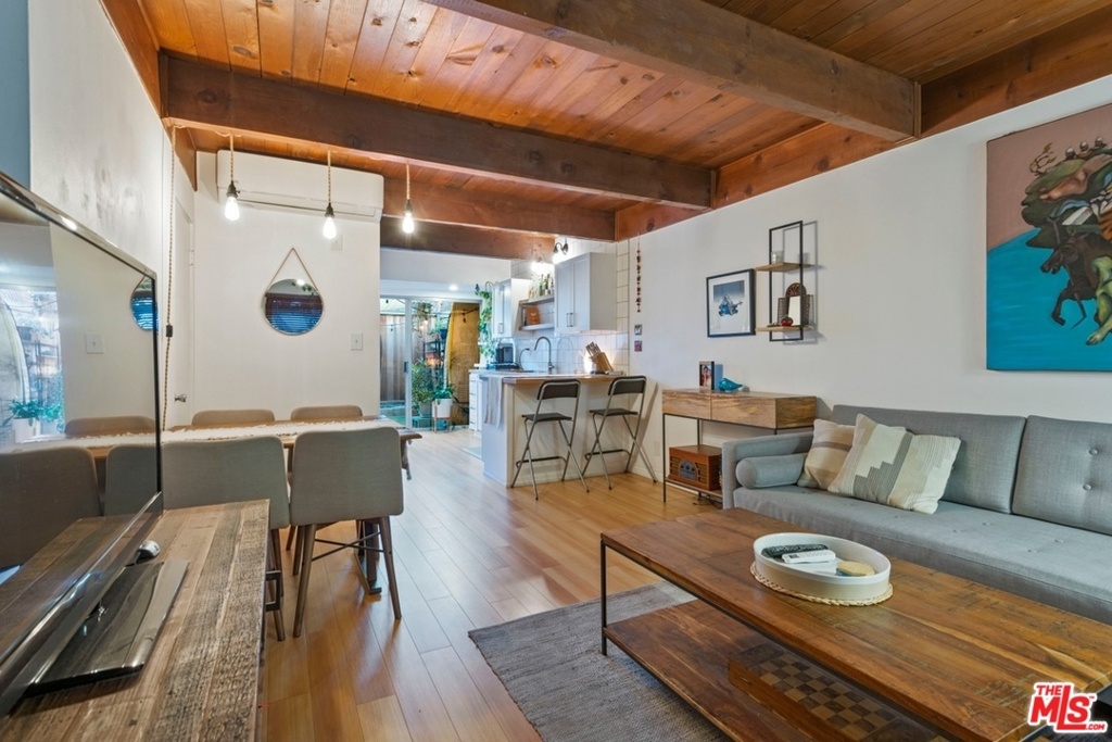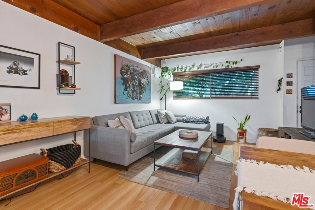 Charming, inner facing townhome with close proximity to the beach, coffee shops, restaurants, Mar Vista Farmer's Market, public transportation and freeways. Enter this beautifully renovated unit through lush gardens and manicured grounds. This 2 bedroom and 1.5 bath townhome features laminate flooring throughout, exposed beam ceilings, skylight and an expansive, private patio off the kitchen. The open kitchen with breakfast bar flows into the living and dining area. Spacious master bedroom with soaring ceilings and a walk-in closet. Laundry area with side-by-side washer/dryer and storage. Newer mini splits air conditioning/heating. HOA dues include earthquake insurance. Resort-like complex offers lush landscaping, pool, spa and spacious outdoor area.