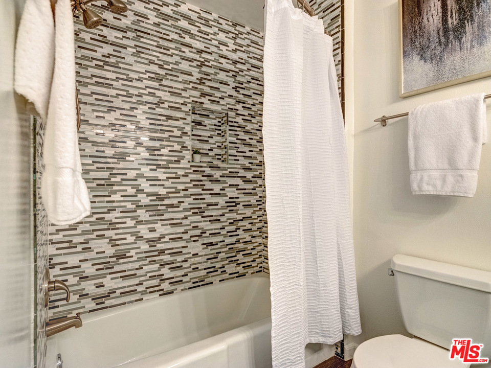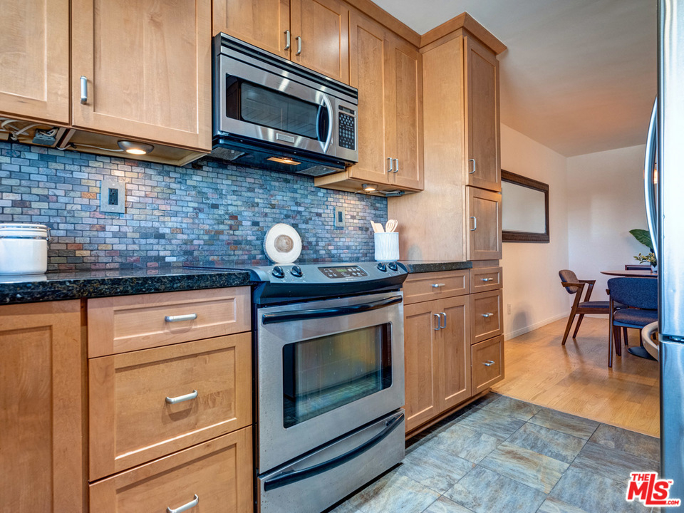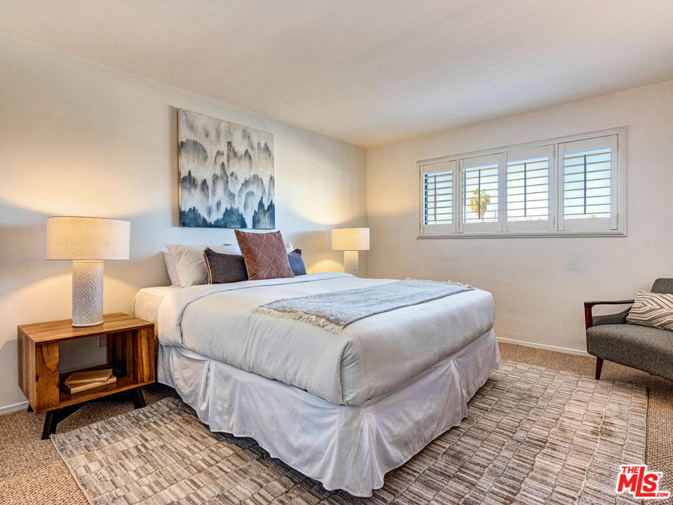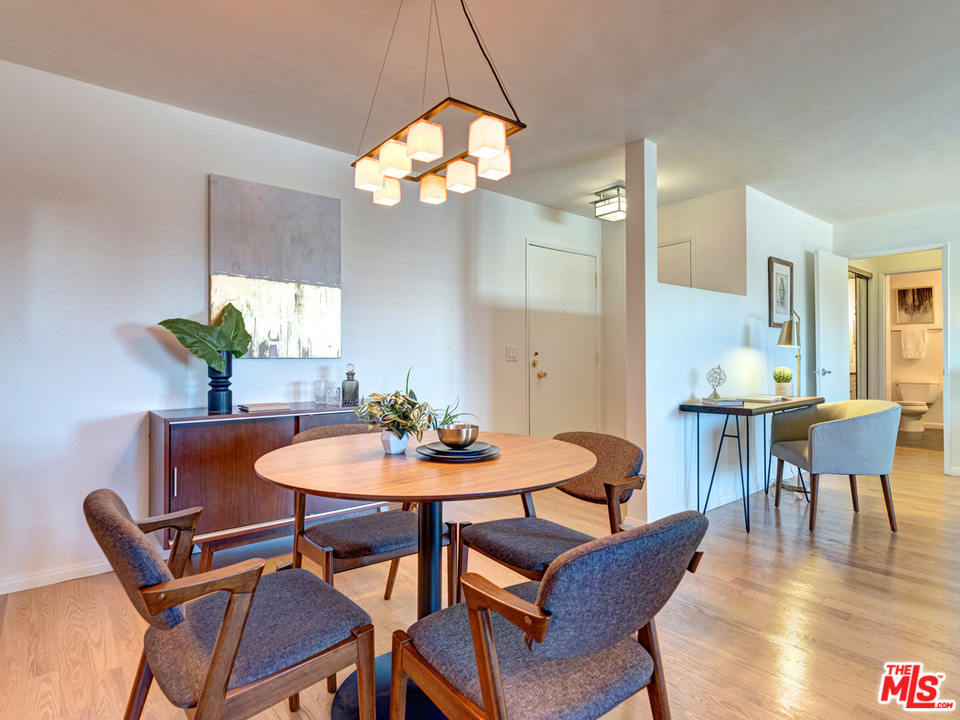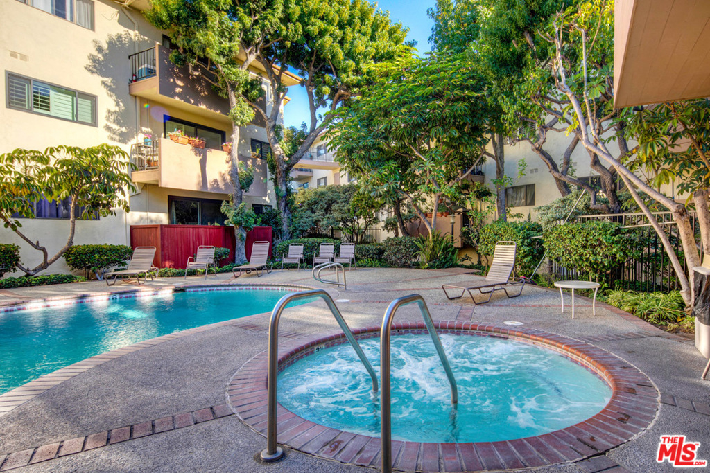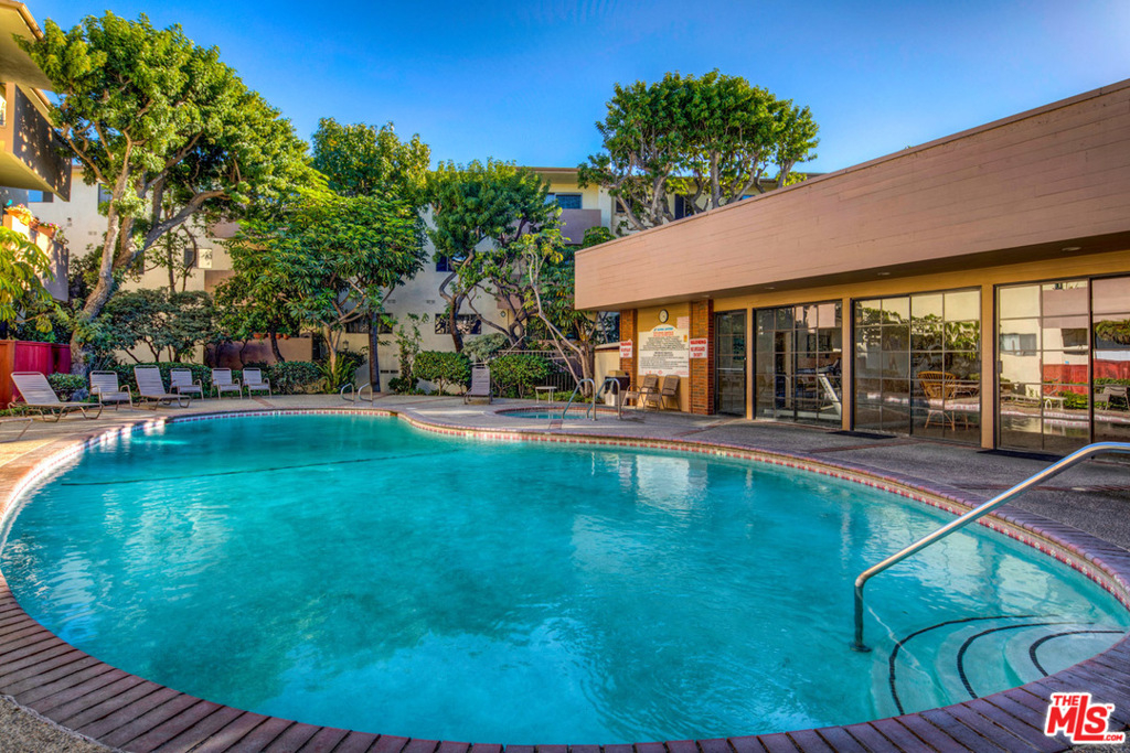 Chic 1 bed 1 bath condo just minutes to the beach, nearby shops, parks and schools, offers an abundance of light and great views of treetops, hills and the Hollywood Sign on a clear day. Central location offers easy access to the 90 and 405 freeways, and the bike path along Ballona Creek. Hardwood floors and fresh paint greet you to an open floor plan with a dining area and breakfast bar onlooking the living room. The kitchen offers porcelain tile floors, granite counters, custom cabinetry and stainless steel appliances! The large bedroom has a very spacious closet with built-in storage and an updated bathroom. Beautiful community grounds with waterfalls and koi pond also offer 2-car tandem parking with storage above carport spaces, heated pool, spa, sauna, recreation room and weight room are also offered.