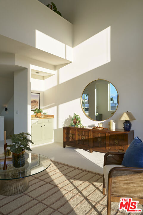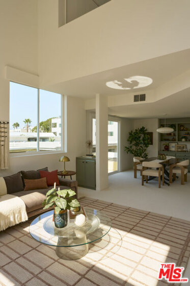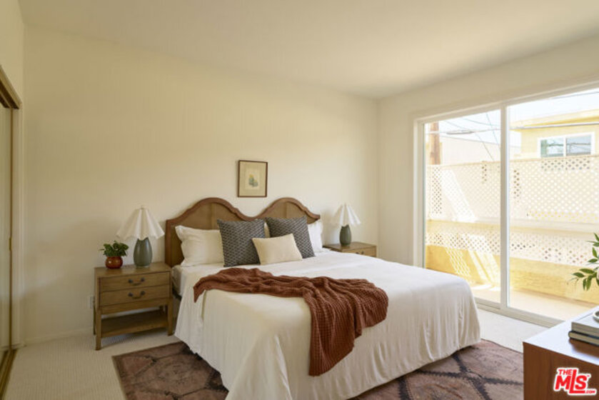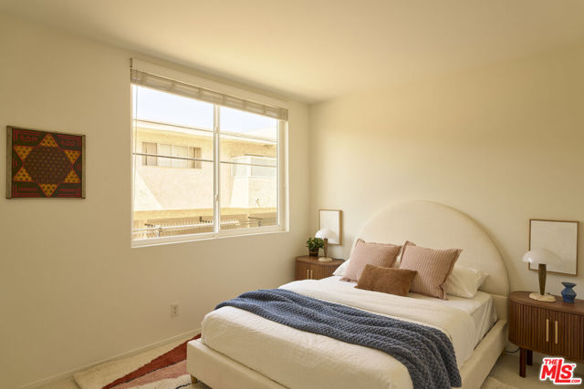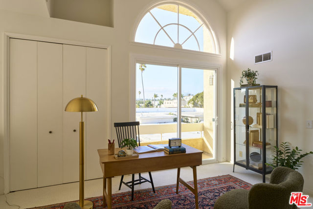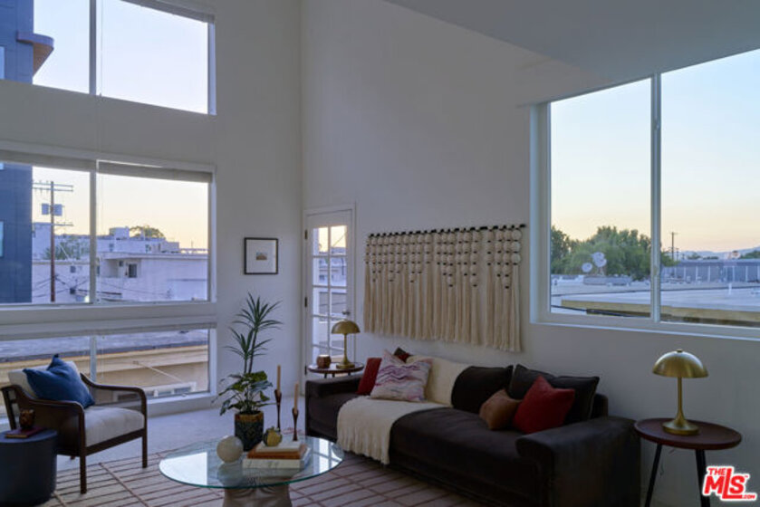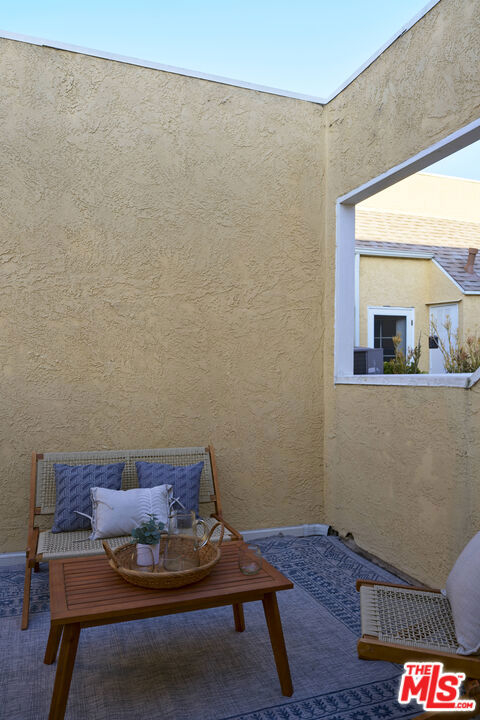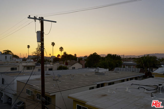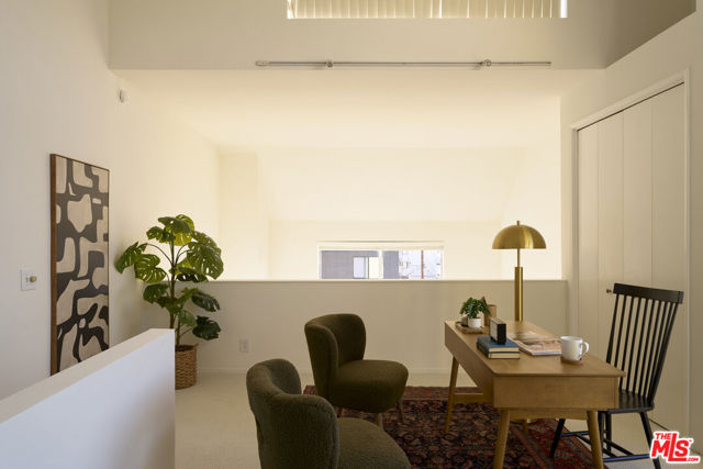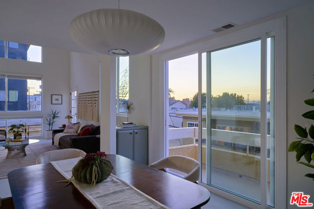 Ideally situated in the heart of Mar Vista, this rarely available, end-unit tri-level townhome is being offered for the first time in nearly 25 years. At the rear corner of a well-maintained community, the residence enjoys exceptional privacy and a versatile floor plan perfectly suited for today's dynamic lifestyles. The sun-drenched second level features soaring 20+ foot ceilings and dramatic floor-to-ceiling windows, welcoming an abundance of natural light throughout the day. Designed with entertaining in mind, the open-concept living and dining areas flow seamlessly and include a cozy fireplace, wet bar, and an inviting balcony. The dining area is enhanced by custom built-in cabinetry and a second private balcony that invites in tranquil ocean breezes. The recently updated kitchen showcases sleek concreta covered countertops, generous cabinetry, and an adjacent breakfast nook offering both functionality and style. Upstairs, a spacious loft offers a flexible environment ideal for a home office, fitness area, or potential third bedroom (buyer to verify), and opens onto a private rooftop deck with sweeping views of the Hollywood Hills. The primary suite, located on the main floor for maximum convenience and separation, includes its own dedicated outdoor space creating a serene retreat within the home. Additional highlights include central air conditioning, in-unit laundry and two tandem parking spaces in a secure garage and a dedicated storage unit.. The well-run homeowners' association has been proactive about building maintenance recently upgrading the property's roof (2021) and insurance coverage to ensure long-term stability. HOA dues of $486.00/month cover trash, water, gardener, the maintenance of courtyard, sauna and general building, as well as electricity in common areas and reserves. HOA allows no more than 1 dog or cat. One additional pet may be kept as long as at least one of the two pets remains an indoor (only) pet. Each pet may weigh up to 35 pounds. Centrally located just minutes from Venice, Culver City, Santa Monica, and LAX, and within close proximity to an array of walkable shops, cafes, and neighborhood favorites, this residence presents a rare opportunity to enjoy contemporary Westside living in one of Los Angeles' most coveted neighborhoods.