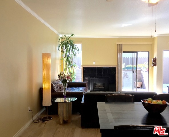 Nestled in the middle of MDR, Culver City, Silicon Beach and Playa Vista sits this Mar Vista townhome. Imagine yourself walking up to your own separate entry with large private patio filled with plants. Open the door to beautiful travertine floors, attractive crown molding, and high ceiling. Decorative gas fireplace to comfort you in the upcoming cold months. Kitchen has been upgraded with granite counters, newer track lighting and faucets. Inside laundry is big enough for full size washer/dryer. Attractive hardwood stairs lead you upstairs featuring two bedrooms with bamboo floors. Master bedroom has vaulted ceiling and four spacious mirrored closets. Pull back the blinds to watch a colorful sunset. Master bath has a skylight to bring in more natural light. Generous sized second bedroom with full size bath. Two tandem pkg spaces. Extra storage in garage. Building installed new intercom 6/11; ext painted 9/11; partial roof 8/15.