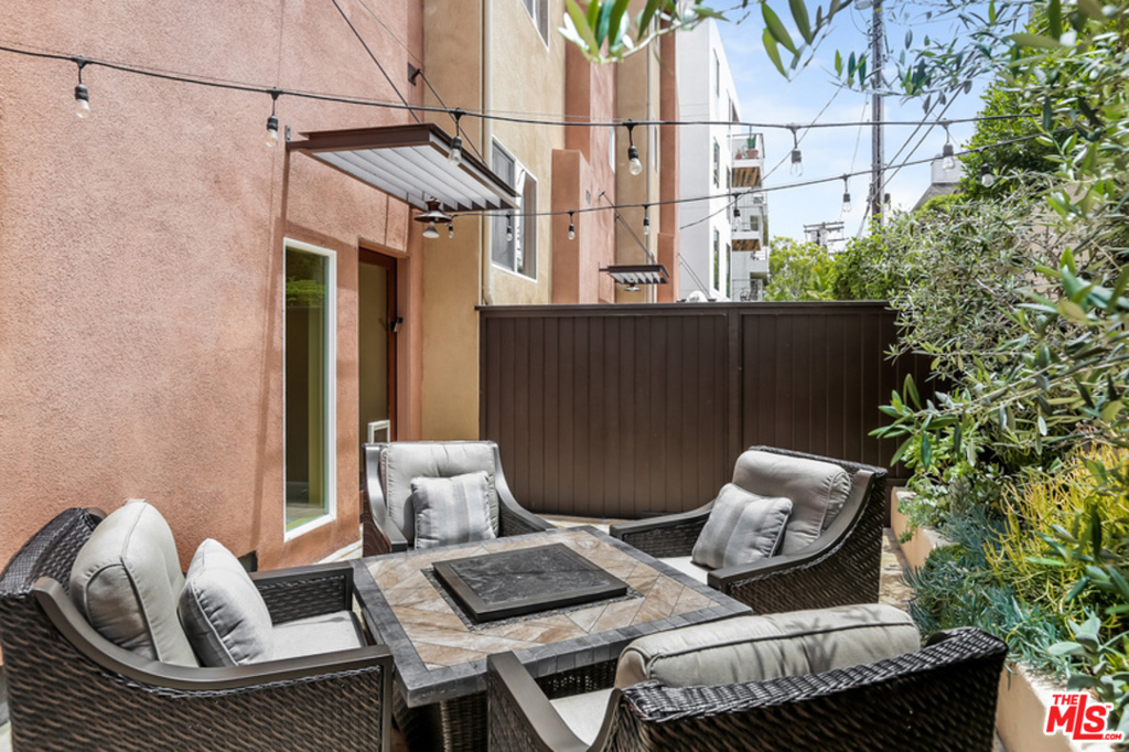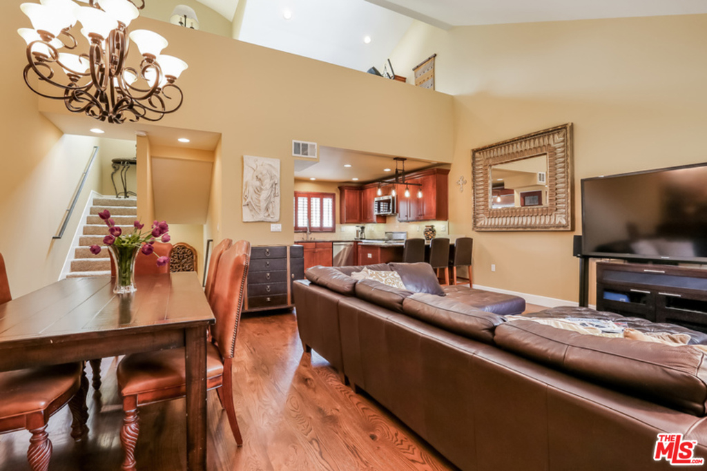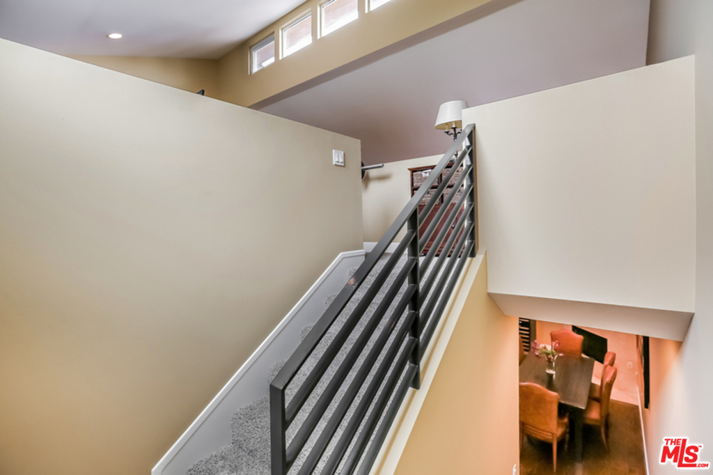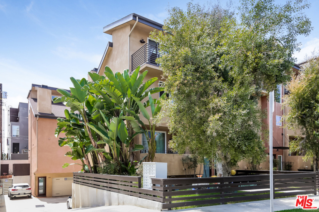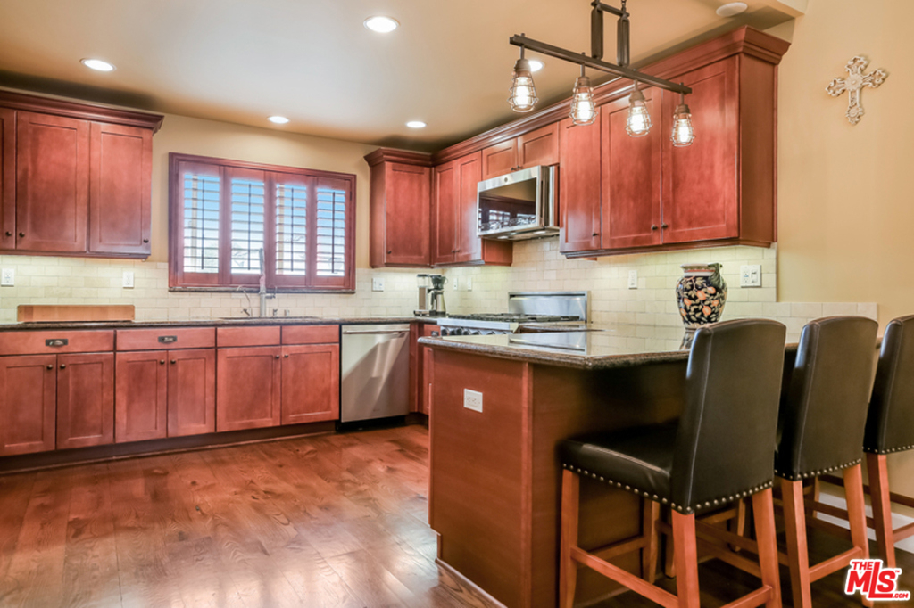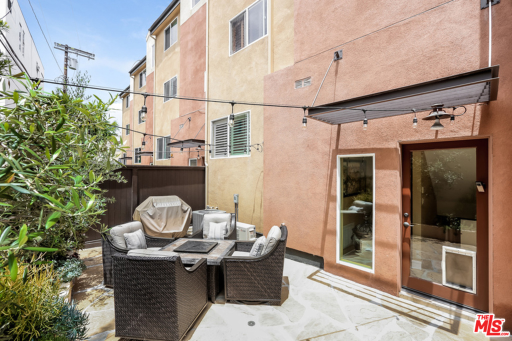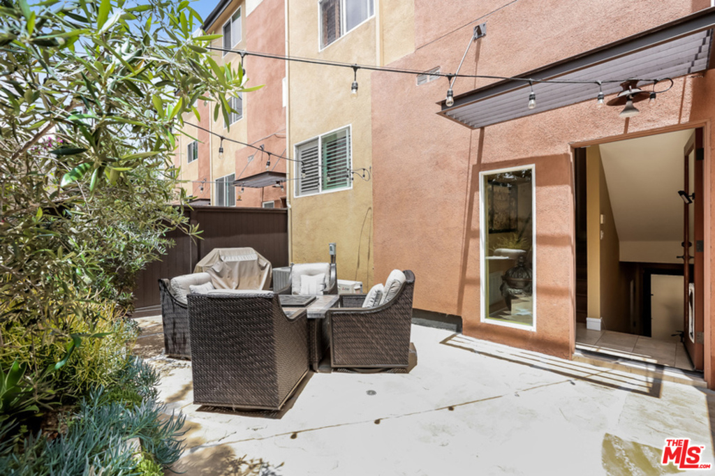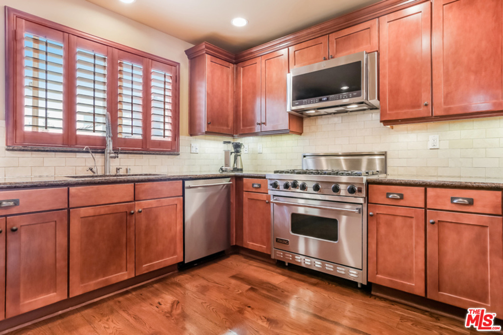 Experience the beauty of this multi level 2 bedroom + loft townhome with an inviting flagstone patio with succulent plants perfect for outdoor entertaining. The living quarters feature dramatic vaulted ceilings, lush dark oak hardwood floors, gas fireplace with stone surround and a gourmet kitchen with granite counters, cherry wood cabinets, a reverse osmosis water filtration system and stainless steel appliances including a 36" Viking 6 burner stove. The master suite has a large walk in closet, linen cabinet and an oversized marble shower. The light filled loft has treetop views ideal for an office/ gym or tranquil retreat. A/C is installed with NEST thermostat. Designer colors throughout. Private 2 car garage with direct access, laundry and storage. Prime Mar Vista location close to restaurants and shops.