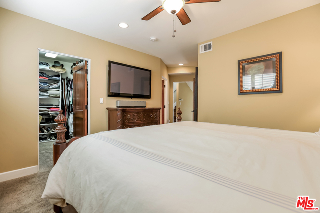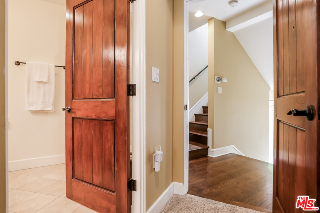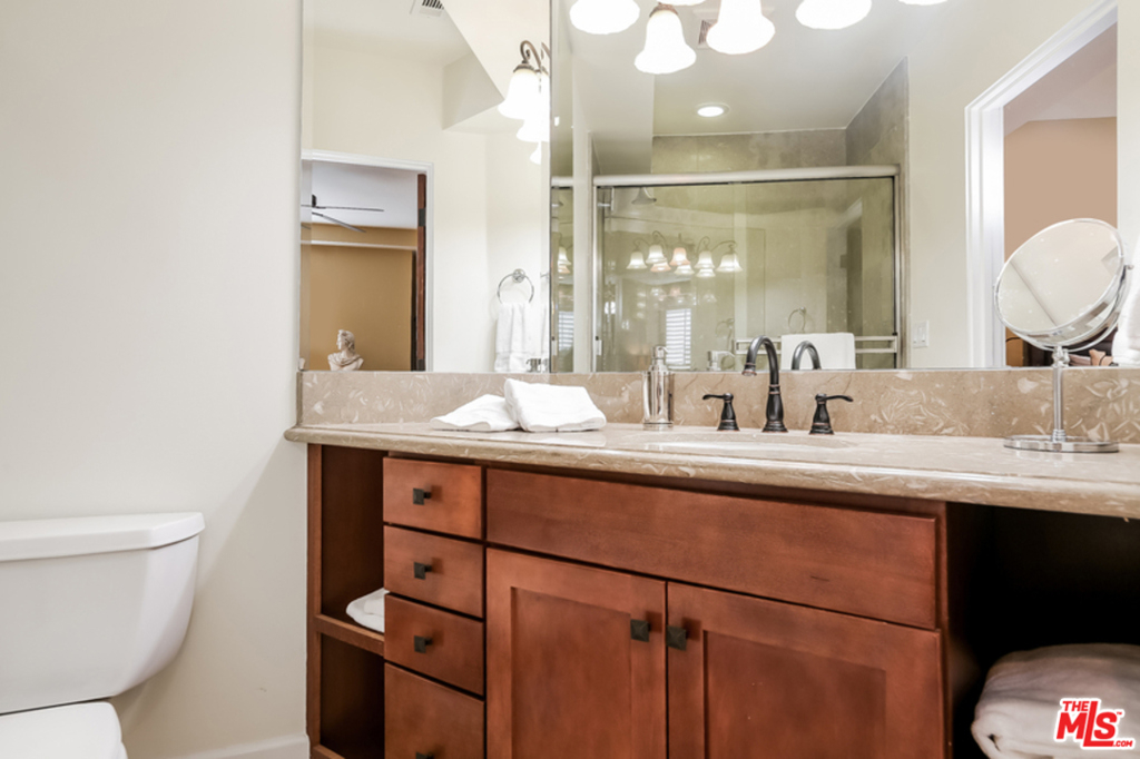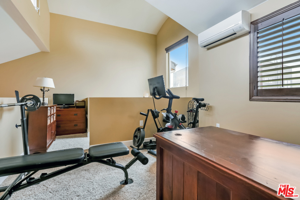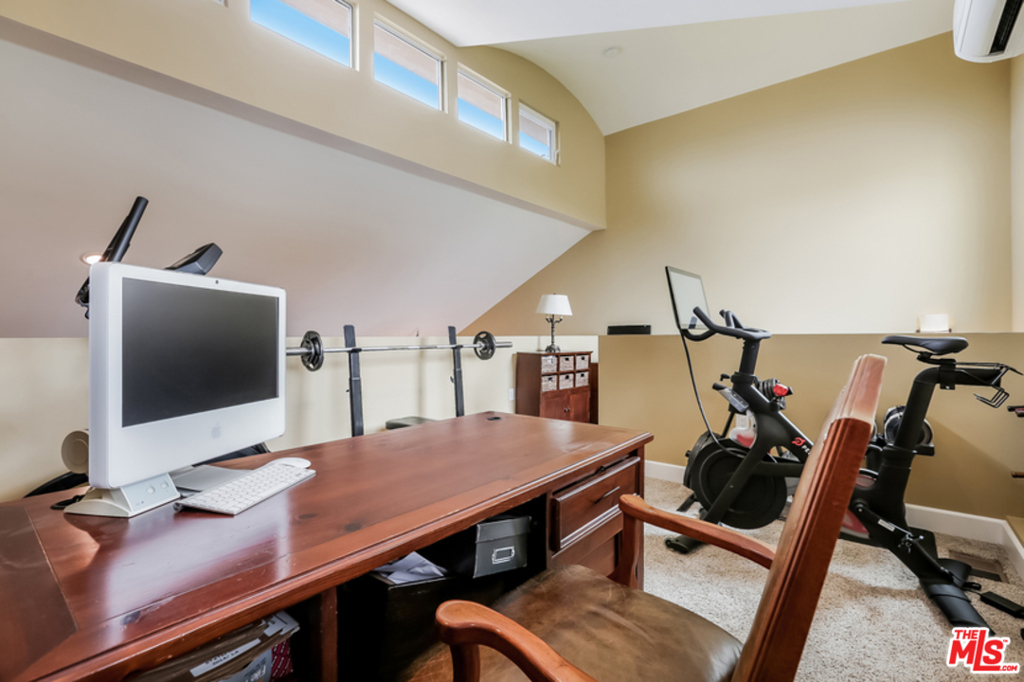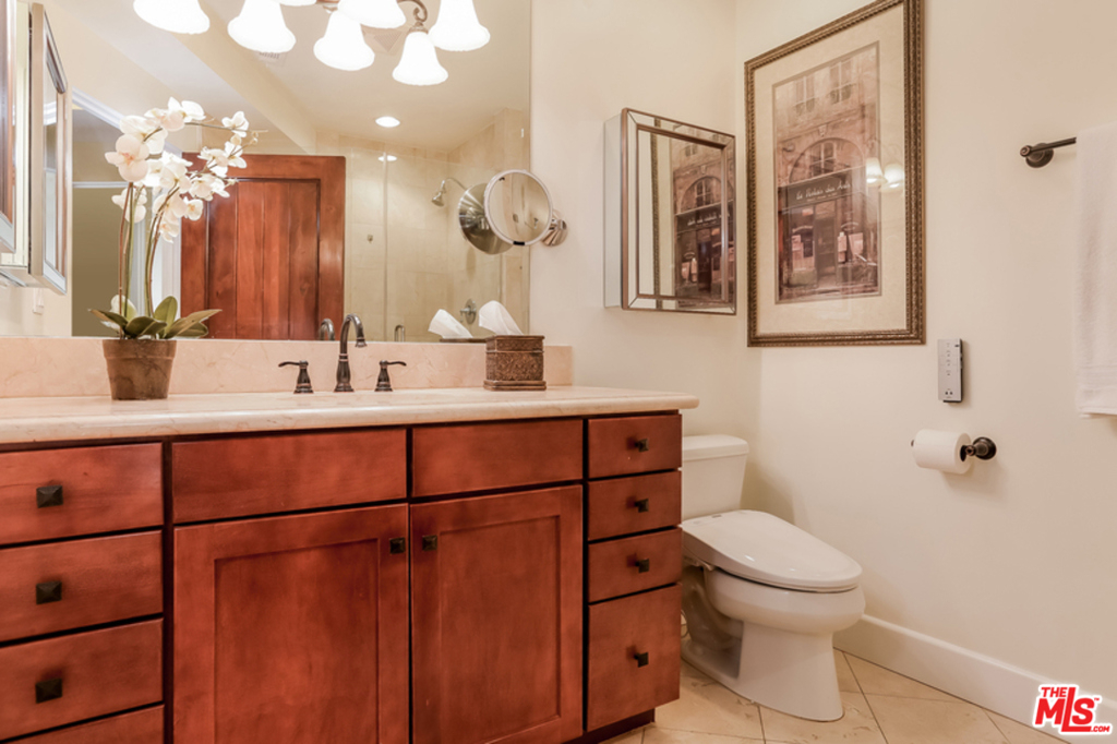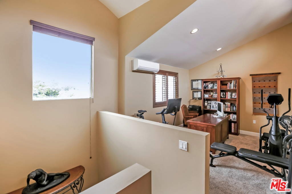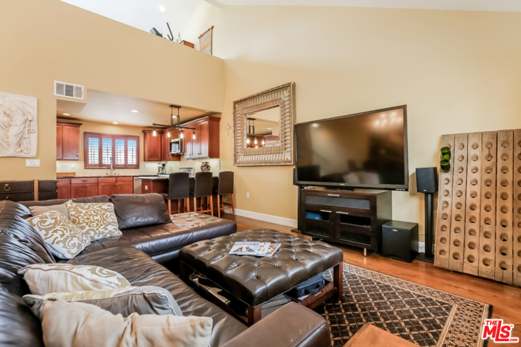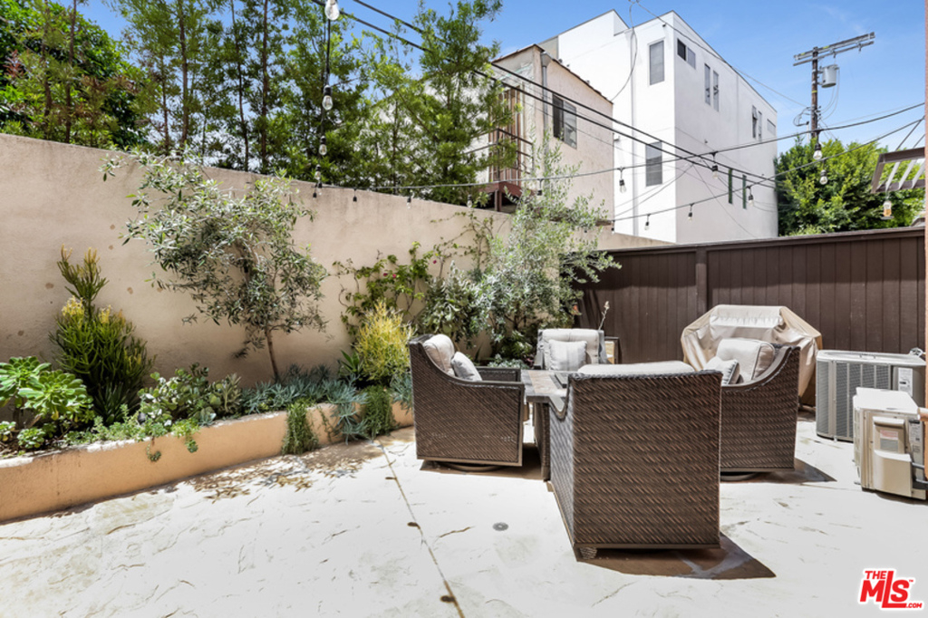 Experience the beauty of this multi level 2 bedroom + loft townhome with an inviting flagstone patio with succulent plants perfect for outdoor entertaining. The living quarters feature dramatic vaulted ceilings, lush dark oak hardwood floors, gas fireplace with stone surround and a gourmet kitchen with granite counters, cherry wood cabinets, a reverse osmosis water filtration system and stainless steel appliances including a 36" Viking 6 burner stove. The master suite has a large walk in closet, linen cabinet and an oversized marble shower. The light filled loft has treetop views ideal for an office/ gym or tranquil retreat. A/C is installed with NEST thermostat. Designer colors throughout. Private 2 car garage with direct access, laundry and storage. Prime Mar Vista location close to restaurants and shops.