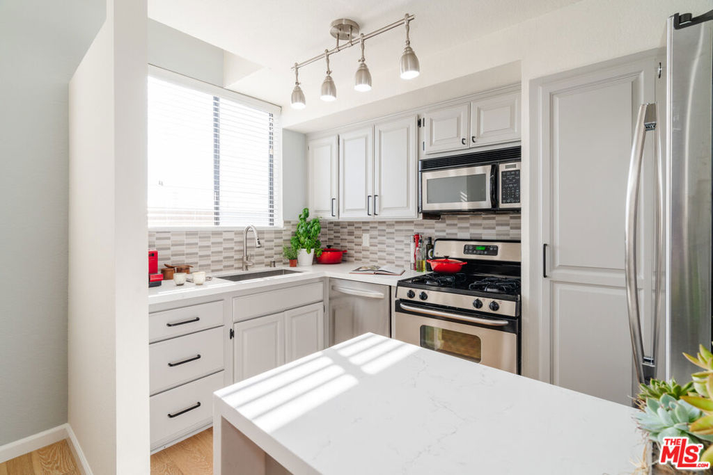 Contemporary 2 bedrooms + LOFT tri-level townhome in Mar Vista with white oak flooring, an abundance of natural light, 3 private patios and an in-unit washer/dryer in a pet-loving building. This 1,300+SF unit has a gourmet kitchen which features Quartz counters. Relax in the living room with an elegant fireplace and vaulted ceilings. The master bedroom has an en-suite newly remodeled bath with his-and-her sinks, Toto toilet and a large tub/shower with sophisticated, sleek tiling. The second bedroom has an adjacent bath. Use the loft as an office workspace or gym. 2 side-by-side parking spots with Tesla charger and storage unit in gated community garage. Close to the beach, the Mar Vista Farmers Market & Starbucks.