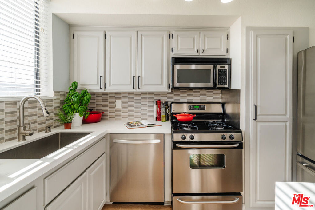 Contemporary 2 bedrooms + LOFT tri-level townhome in Mar Vista with white oak flooring, an abundance of natural light, 3 private patios and an in-unit washer/dryer in a pet-loving building. This 1,300+SF unit has a gourmet kitchen which features Quartz counters. Relax in the living room with an elegant fireplace and vaulted ceilings. The master bedroom has an en-suite newly remodeled bath with his-and-her sinks, Toto toilet and a large tub/shower with sophisticated, sleek tiling. The second bedroom has an adjacent bath. Use the loft as an office workspace or gym. 2 side-by-side parking spots with Tesla charger and storage unit in gated community garage. Close to the beach, the Mar Vista Farmers Market & Starbucks.