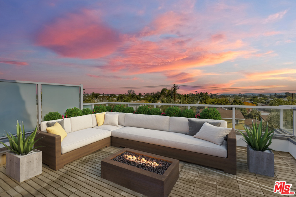 Dramatic architectural space with soaring ceilings and abundant light merges industrial finishes with comfortable living. An open floor plan made to entertain includes the living room, dining area, powder, kitchen and laundry w/ Samsung w/d. Kitchen features Viking range stove and refrigerator, Caesarstone counters, Bosch dishwasher, subway tile backsplash. Primary bedroom boasts an oversized shower, bathtub, dual vanities. Down the hall, the secondary bedroom is equipped with an en-suite bath. The top levels hosts an additional bedroom with its own bath that leads to an additional bonus area/office that could be a zen yoga/meditation space with walk-out access to a spacious roof deck overlooking panoramic mountain top and city views from Hollywood to downtown. Located in the Marina del Rey Arts District with easy access to the beach and Via Marina Marketplace (Gelsons, Equinox, CVS, banks, etc.). Private entry from both front and back. Two-car garage includes plenty of storage and space for an additional office or home gym. Optional access to pool/spa, gym, lounge with bbq. 3D Tour available upon request. Photos are virtually staged.