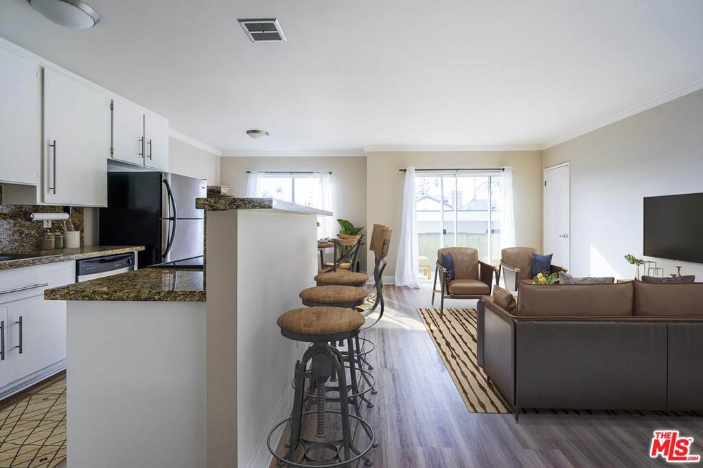 Bright & breezy top floor 1bd/1bth condo w/ In-Unit Laundry in renowned Mar Vista/Venice. Enjoy our beautiful SoCal sunset from your west-facing balcony. Or grab your surfboard and use the bike path on Venice Blvd to head to the beach or Abbot Kinney eateries. Or stay local & stroll around the corner to some of the westside's best bars/restaurants like Hatchett Hall, The Corner Door & Tangaroa. Also enjoy Ginger's Ice Cream & the Sunday Mar Vista Farmer's Market. This unit was remodeled in recent years w/ brand new flooring, fresh paint, s/s appliances, new counters, travertine bathroom & more. Amazing closet space + extra carport storage. The 4'x4' closet off the living room could also serve as a small office. This modern, well-maintained 9 unit building was recently updated & reinforced with Soft-Story EQ Retrofitting, while still offering its owners very low monthly HOD's. Why rent when you can own for the same monthly payment?