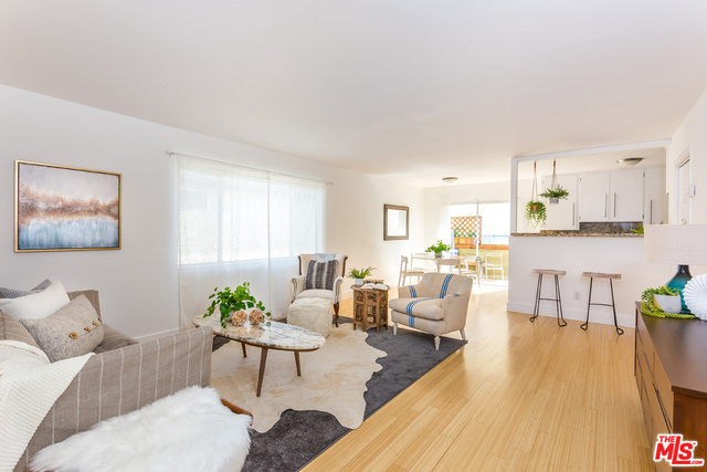 Exceptionally quiet, bright & airy top-floor condo offering 1-BR & 1-BA in highly sought after Mar Vista! This corner unit enjoys incredible natural light in every room while capturing a cool breeze off the coast. Functional & well-proportioned, this home has it all! Updated open-concept kitchen w/ stainless steel appliances & granite counters, newly refinished hardwood flrs, a generous sized bedroom w/ excellent closet & built-in storage space, elegant bathroom w/ combo bathtub/shower & lovely wood decked balcony off living area. The freshly painted home also has in-unit laundry, 2 parking spaces + separate storage unit! This 9-unit boutique building is impeccably maintained, has extremely low HOA dues and offers an unparalleled location. Situated on a quiet, charming street, close to the beach, Venice, Playa, Silicon Beach, tons of shops & restaurants along Venice & Washington and the fabulous, every-Sunday Farmer's Market. The total package, THE ONE you've been searching for!
