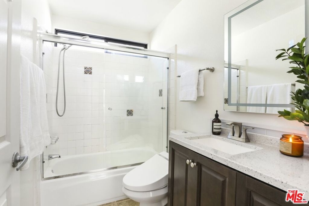 Exceptional light-filled, top floor condo in desirable Spanish Courtyard building in Mar Vista. Upon entering this chic upper unit, you're immediately welcomed by the bright open floor plan with two sets of south-facing glass sliding doors that open to a patio where you can enjoy the sunlight while sipping your morning coffee. The updated kitchen with stainless steel appliances and soft closing cabinetry with under cabinet lighting also has a combination washer/dryer for convenient in-unit laundry. The spacious bedroom has a large closet with upgraded storage system built ins along the west wall and feels like your own peaceful sanctuary with new dual pane windows. The stylish bathroom has all the mod-cons you might expect from a high-end boutique hotel with a newly installed adjustable backlit LED mirror and Toto washlet with heated seat & remote control. Other features include a central air and heat with a NEST thermostat (Gen 2), Schlage electronic lock on the front door, new power outlets and wifi-controlled light switches. The unit also comes with 2 parking spaces, 2 additional storage spaces and bike storage in the gated underground garage. This building has a low HOA and also carries earthquake insurance. The absolute best thing about this stunning abode on Sawtelle is how close it is to the Japantown and all it has to offer! Don't forget the proximity to both Trader Joe's & Whole Foods as well as all the shops and restaurants of Culver City/Westwood/Santa Monica/Venice. Welcome to luxe living in a prime location!