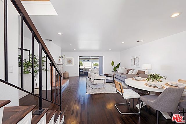 Wonderful Townhome living in a quaint building on a cul- de -sac street nestled between Mar Vista and Culver City. Pool side lounging feels so much like a vacation a great way to unwind at the end of the week. Open floorplan with large living room opening to the kitchen great for entertaining. Fireplace highlights the bright living room. Updated cooks kitchen with granite counters, breakfast bar and flower box window with lots of light. Two huge bedroom suites with room for a sitting area lots of closet space and both have en-suite bath. This close to the end unit has a larger patio than most in the complex. Central air conditioning and central heat, rich dark engineered floors, tankless water heater and so much more. Subterranean parking with two side-by-side spots. Close to Marina, Playa Vista, easy access around town and to airport.