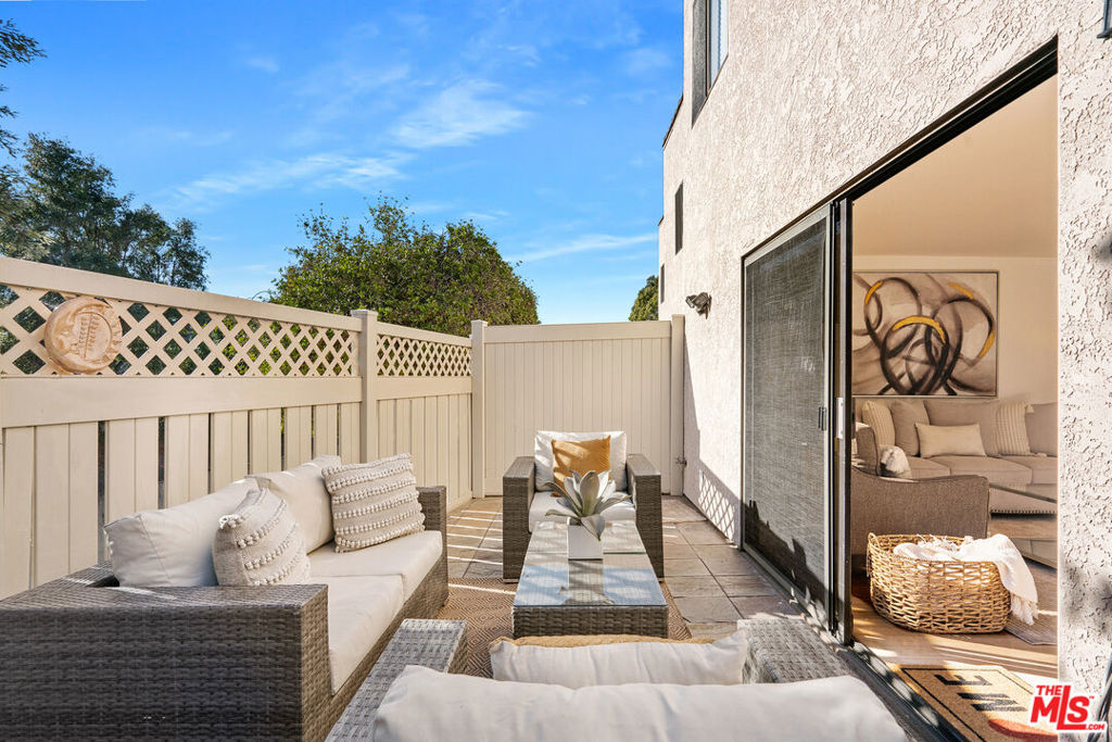 Welcome to this large 2-story townhome with a huge private & sunny patio! With only one shared wall, this home has a great open floor plan with a spacious living room, dining area and fireplace. Sliding doors lead to the outdoor oasis which feels like an extra living room, also perfect for al fresco dining. The open kitchen with breakfast bar has all new stainless steel appliances. The main bedroom suite has huge closet space and a full en-suite bathroom with skylight. Additional features include central air & heat, in-unit washer/dryer, side by side parking and ample extra storage. HOA fees includes EQ insurance, secured garage with guest parking, sparkling heated pool + jacuzzi and much more. Located on a quiet tree lined street, this elevator building has great reserves and features a private park area for your outdoor gatherings. Take the Ballona Creek bike paths down to the beach, walk great restaurants like Lodge Bread, Hatchet Hall, The Mar Vista Farmers Market ... this one has it all in prime location!