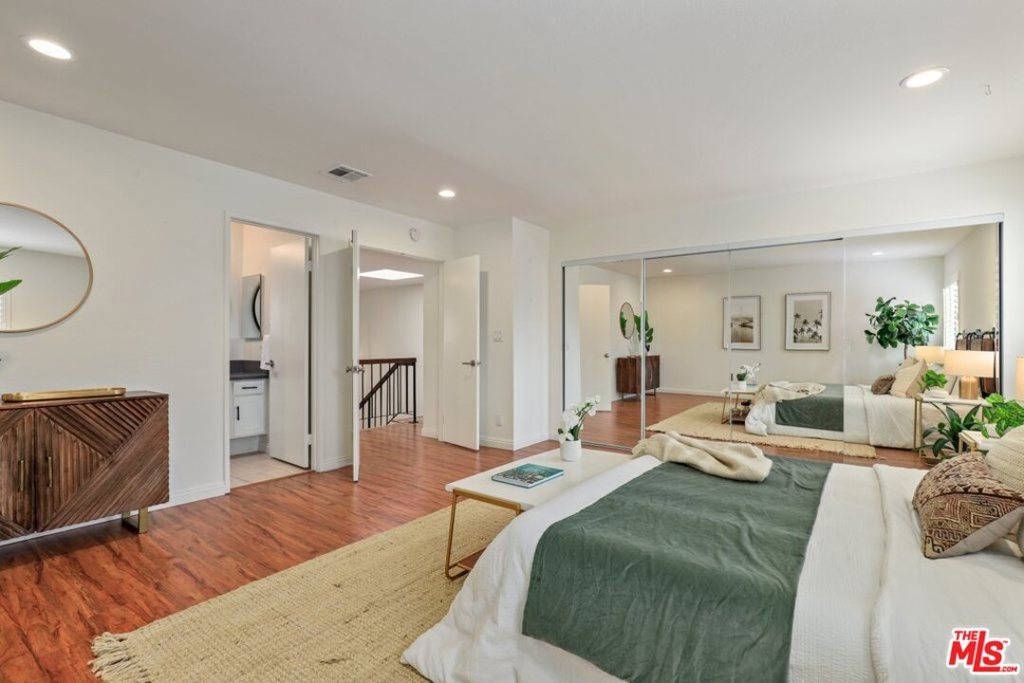 Gorgeously rennovated 2 story townhome in the heart of Mar Vista! This beauty is spacious with an open floor plan and tons of natural light throughout! Custom plantation shutters, reccessed lighting, gas fireplace, balcony, quartz coutertops, stainless steal appliances, new laminate flooring, skylights, and plenty of storage throughout! This stunning home has central AC/Heat, Nest thermostat, in-unit laundry, 2 parking spots Side by Side, a shared extra storage unit, guest parking, pool, jacuzzi, private park and SO MUCH MORE!!! Generously sized dual primary suites upstairs each with luxurious en-suite bathrooms and ample closet space in both! HOA includes earthquake insurance, water, trash, secured garage and building maintenance. Located seconds from the Culver & Ballona Creek bike paths, lots of restaurants and shops! MUST SEE!!! WON'T LAST LONG!!!!!