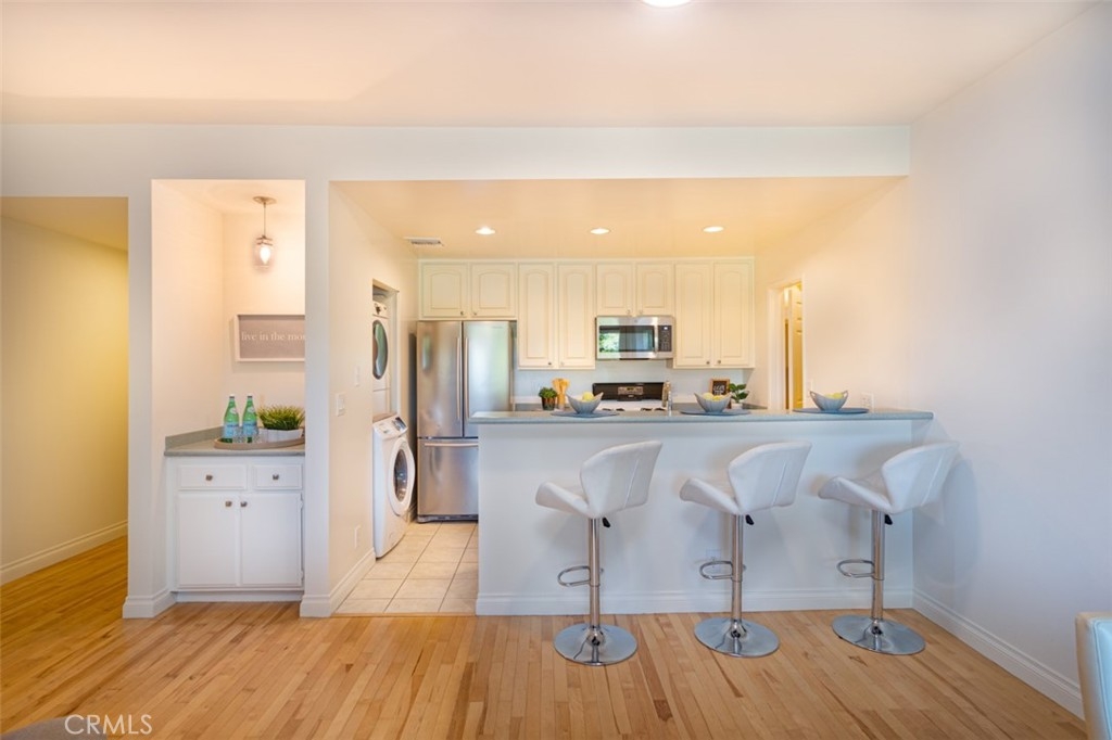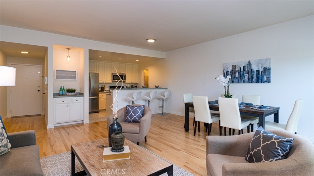 Spacious 2 Bedroom, 2 Bath corner end-unit condo in desirable Mar Vista Oval (1 mile radius with beautiful tree lined streets containing Bungalow, Cottage, Craftsman & Saltbox architecture from the early 1900’s & new multi-million-dollar custom homes.) Light and airy with maple hardwood flooring, gas fireplace, private balcony with treetop views, perfect for dining or working outside. Bedrooms are very large with walk-in closets. Other features include fresh interior paint, built-in bar next to kitchen, Corian counters, walk-in pantry, stainless steel refrigerator, kitchen sink, dishwasher, and microwave. In-Unit stackable washer and dryer. Central HVAC. His and Her sinks in master bathroom. Two tandem parking spaces (gated/secured,) with elevator access to the unit. Tons of storage in the unit & garage. Minutes to Venice Beach, Culver City & the 405 & 10 freeways. Enjoy the neighborhood… Mar Vista farmers market, coffee houses, restaurants, shops, & concert venues. Small 9-unit building. Ample, easy street parking for guests. Non-smoking/pet friendly. Check out 3D virtual tour.