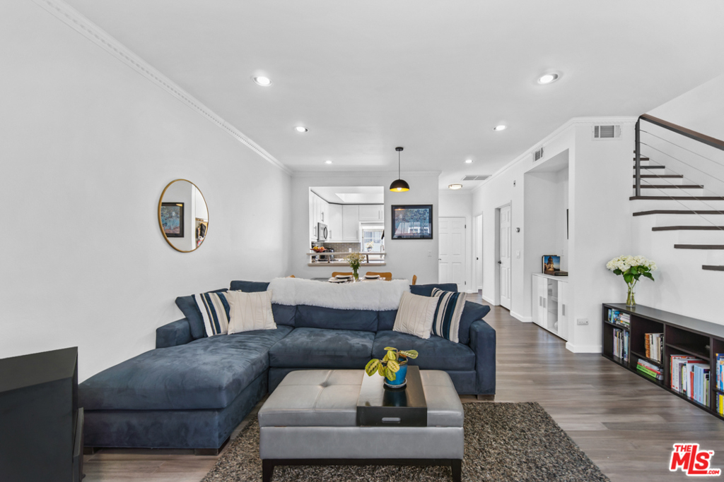 Contemporary two-bedroom, two-and-a-half bathroom townhome in the heart of Mar Vista. Inviting open living room with peaceful private patio and large shared courtyard space. The interior features new bamboo wood flooring throughout, new paint, newly rebuilt stairs with modern handrails, and a new water heater. The recently updated kitchen showcases white quartz stone countertops, a modern backsplash, new stainless steel appliances, and opens up to the living room for perfect entertaining space. Head upstairs to your dual primary suites with vaulted ceilings and spacious walk-in closets with custom built-in storage. In-unit washer/dryer, extra storage throughout, new window screens and coverings, tandem parking, and minutes to the best of Mar Vista. Pull up a chair and enjoy a good book on your privately enclosed patio or fire up the grill and enjoy with friends or walk to the soon-to-be Culver Market, one of the newest hot spots when construction is done, only a few blocks away.