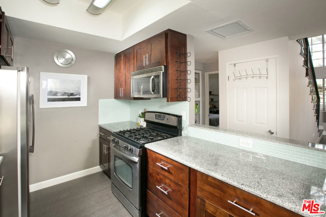 Welcome home to this recently remodeled Mar Vista town home with modern finishes throughout. This sophisticated, private end unit boasts an open layout, accentuated by vaulted ceilings and floor to ceiling windows with flowing natural light. Private bedrooms are on opposite ends of the home, the kitchen opens to the dining area and living room with fireplace and balcony - perfect for entertaining. The loft is also very private with a closet, ideal for a guest room, office or studio for an artist. The kitchen remodel includes granite, cherry cabinets, stainless steel appliances with custom back splash. All cabinetry in the home includes soft close drawers and doors, custom paint, grey designer bamboo floors, and custom tile. Energy efficient amenities include Smart Wemo switches, Eco bee3 thermostat with sensors, motion detector light switches throughout, newer a/c and heat pump, newer tank less water heater, whisper quiet bathroom fans with auto humidity switches, many more details.