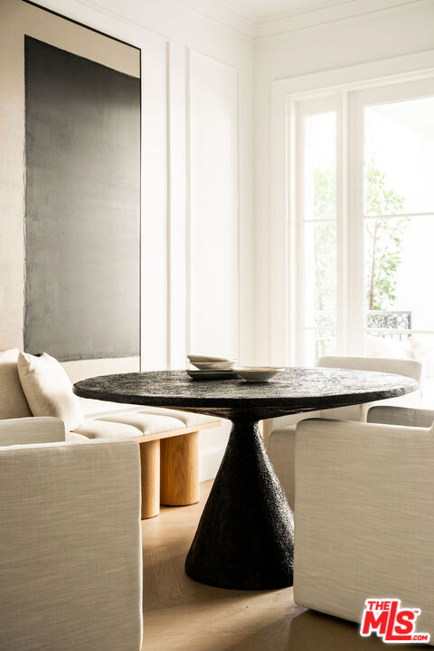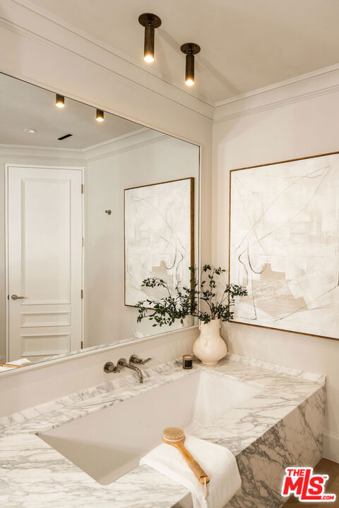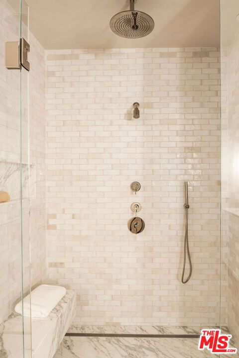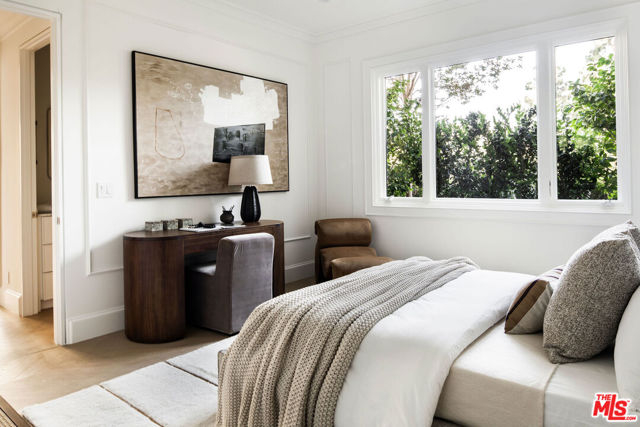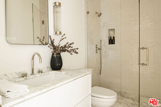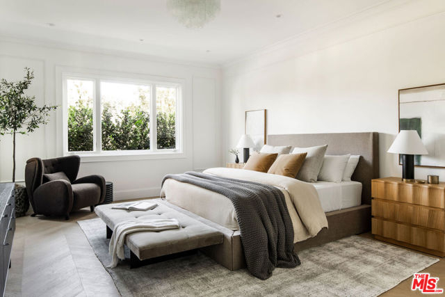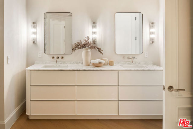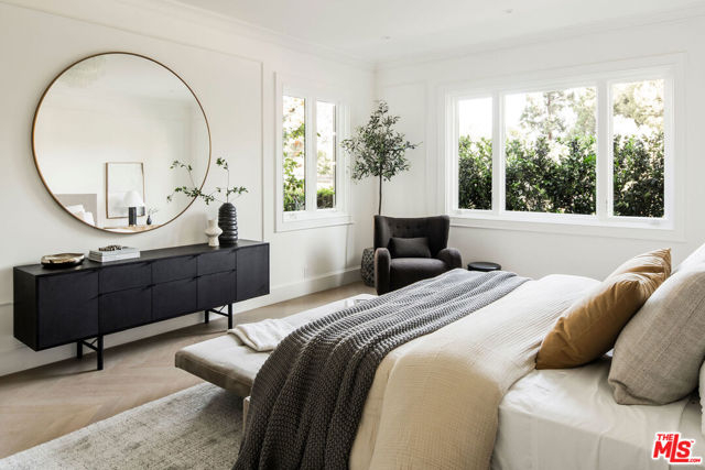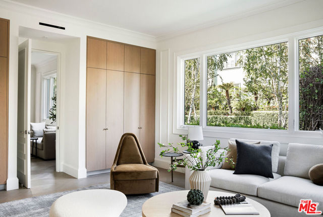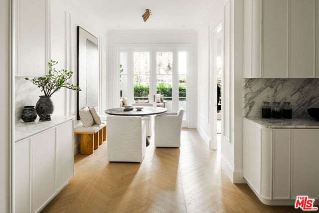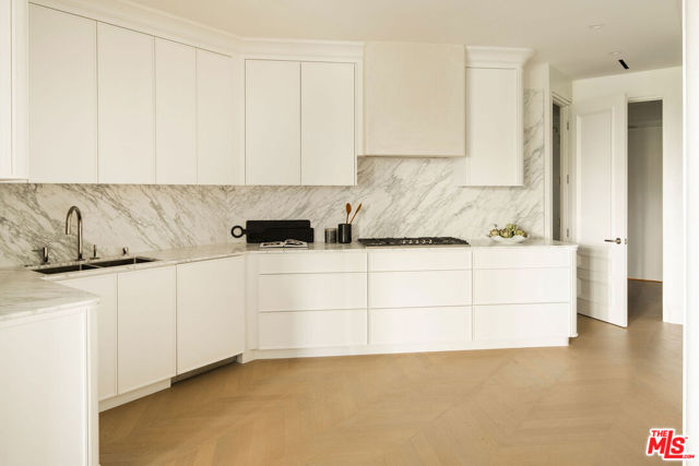 A masterclass in curated luxury and refined sophistication within Century City's most prestigious guard-gated community, this rare, approximately 2,900 sq ft Le Parc residence has been completely reimagined with an uncompromising commitment to elevated design, artisan craftsmanship, and global-sourced materials. Every surface has been meticulously reinvented with bespoke finishes, custom carpentry, and a refined palette that blends European sophistication with modern California elegance. A grand vestibule sets the tone with Pietra Gray marble slab flooring, Roman Clay walls and ceilings, and a sculptural Shiro Noda pendant. The living and dining spaces are defined by custom white oak chevron flooring, designer lighting, linear air registers, and a stunning Pietra Gray marble fireplace creating an atmosphere of warmth, proportion, and quiet luxury. The chef's kitchen is a true showpiece: fully paneled Thermador appliances, Italian Calacatta marble countertops and backsplashes, a custom plaster hood, polished nickel Kallista fixtures, and a built-in marble appliance garage crafted with exceptional detail. Adjacent, the dining room is anchored by custom millwork and an imported Murano glass chandelier. The powder room is a design-forward jewel box with unlacquered brass Kallista fixtures, European marble sink, Murano sconces, Roman Clay finishes, and a solid-core Trustile door. In the private quarters, the primary suite offers a serene retreat with Italian Murano glass lighting, fully customized LED-lit closets, and a spa-caliber bath clad in Italian Calacatta marble and Moroccan Zellige tiles, with polished nickel Kallista fixtures and an Americh soaking tub. Secondary baths continue the elevated design story with hand-glazed tiles, Starphire shower glass, polished nickel fixtures, and designer lighting. Additional updates throughout include all-new Andersen E-Series double triple glazed windows (among the finest on the market), a completely new HVAC system with new ductwork and linear diffusers, fully updated electrical and plumbing systems, all-new low-voltage and security integration, and custom Trustile 8-foot solid-core doors with polished nickel hardware. This is Le Parc at its most luxurious and impeccably curated, turnkey residence of rare quality and timeless sophistication.