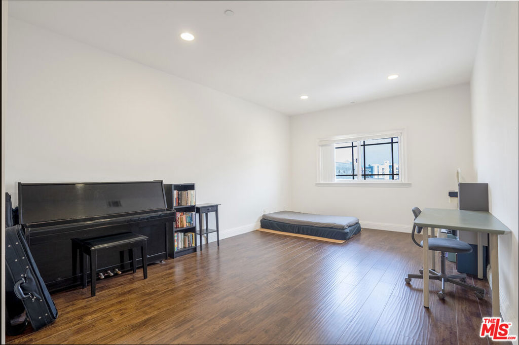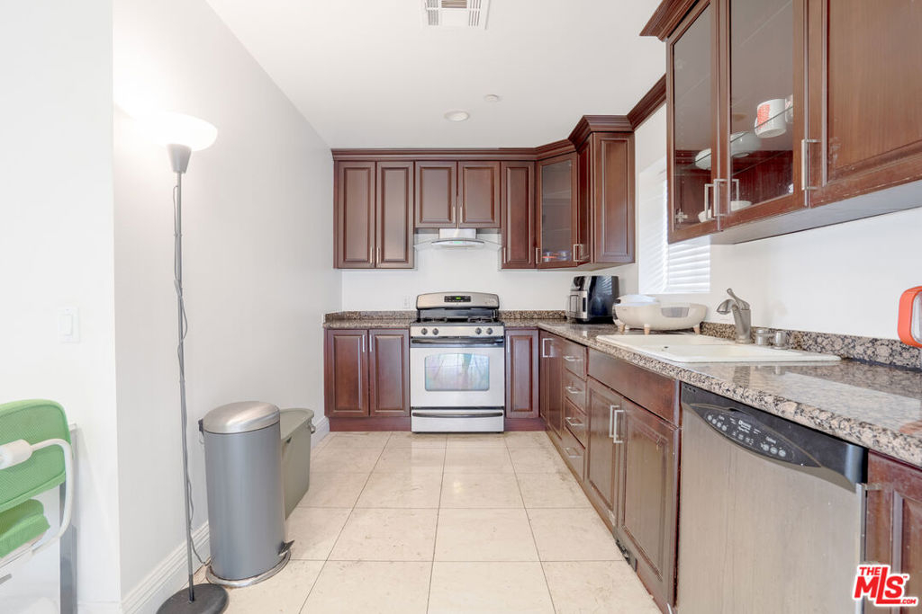 Contemporary 2-Bedroom, 2-Full-Bathroom Condo, Built in 2007. Experience breathtaking views of the iconic Hollywood sign from this stunning unit! This open floor plan features elegant marble and laminate flooring throughout. The modern kitchen boasts granite countertops, stainless steel appliances, and exquisite custom cabinetry, complemented by crown molding and dual-pane windows for added comfort.The master bedroom is thoughtfully separated from the living room, ensuring privacy for residents. Enjoy your own private balcony, perfect for relaxation.Located in a secure, gated community with dedicated parking, this well-maintained building has recently been painted on the exterior. Residents can take advantage of the on-site fitness room and other amenities.Conveniently situated in a low-traffic area, this condo is just minutes away from freeways, downtown, and USC. Don't miss out on this exceptional opportunity!