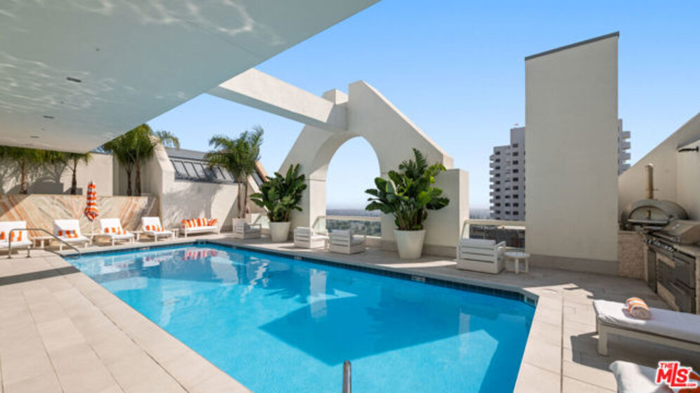 Set within the prestigious Dorchester located on the Wilshire Corridor, this bright, quiet and beautifully updated rear facing two bedroom two bath residence presents a rare opportunity. The home is positioned with a preferred south facing orientation, offering a peaceful and private setting. The interiors have been thoughtfully renovated with a refined, modern sensibility. Abundant natural light, clean lines and tailored details bring a sense of warmth and ease throughout. Both bedrooms are well separated for privacy. The primary suite is generously scaled with a walk in closet and a spa like bath designed for comfort and relaxation. Residents enjoy a full service lifestyle with 24 hour concierge, doorman and valet, along with secure parking. The Dorchester is known for one of the most sought after rooftop settings on the corridor, featuring a pool, BBQ, fitness center and sweeping city views. Just moments from Century City, Beverly Hills and Westwood, this residence offers a seamless blend of style, comfort and location in a premier full service building.