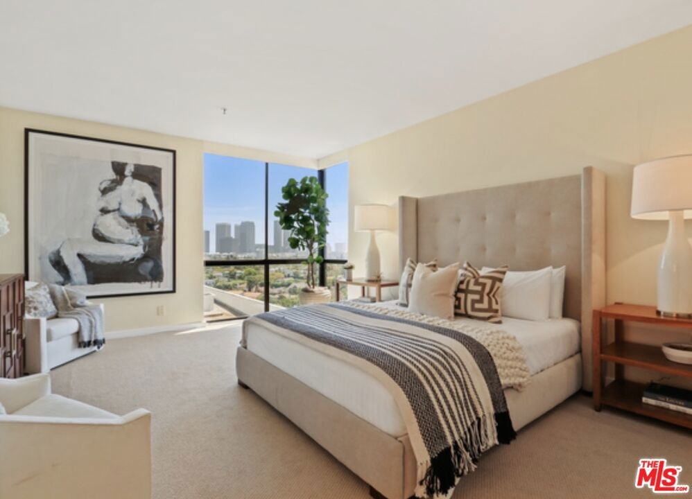 Perched on the coveted Wilshire Corridor high on the 10th floor, this refined 3-bedroom, 3.5-bath residence offers an exceptional level of sophistication, scale, and sweeping south-facing city and treetop views. Bathed in natural light, the residence captures both southern and eastern exposures, creating luminous interiors and tranquil private retreats. A grand open-concept living and entertaining space is anchored by elegant marble flooring and expansive windows that frame panoramic skyline vistas. An impressive, oversized bar serves as a dramatic focal pointperfect for hosting intimate gatherings or elegant evenings at home. The gourmet kitchen is thoughtfully designed to flow seamlessly into the main living areas, yet offers the flexibility to be closed off for privacy when desired, ideal for formal entertaining. A conveniently located laundry unit is discreetly positioned within the kitchen area for everyday ease. Each bedroom is generously proportioned and ensuite, offering comfort and privacy. The primary suite provides a serene retreat elevated above the city with a spacious bathroom and generous-sized walk-in-closet. Residents enjoy the full-service amenities of one of the Corridor's premier luxury buildings, including 24-hour security, valet service, doorman, a state-of-the-art fitness center, resort-style pool, and a conference room. A rare opportunity to experience elevated, full-service living in one of Los Angeles' most prestigious addresses.