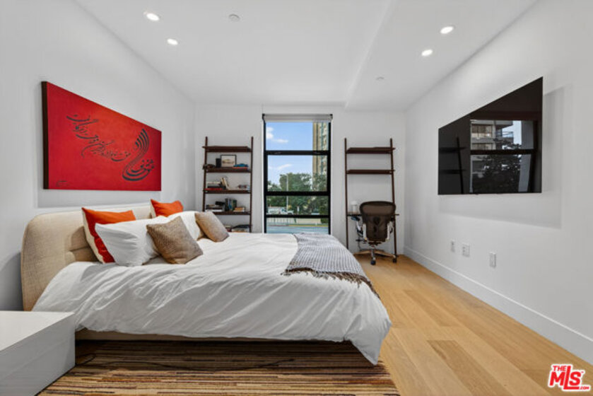 Residence 208 is an elegantly appointed one-bedroom plus den unit, positioned on the second floor of The Liddel, an exclusive collection of contemporary residences along the Wilshire Corridor. The main living area is filled with natural light, offering front south-facing views and great space for relaxation. The chef's kitchen is both refined and functional, showcasing bespoke Jamie Bush millwork, integrated Miele appliances, and a striking signature island. The primary suite features a generous walk-in closet, while the den provides versatility as a private office or secondary bedroom. Additional Jamie Bushcurated finishes include wide-plank white oak flooring, terrazzo-clad bathrooms, custom vanities, and Atelier de Troupe lighting throughout. Residents enjoy a full suite of premier amenities, including 24-hour concierge service, a private enclosed motor court with valet and EV charging, an elegant club lounge and wine room, catering kitchen and private dining space, state-of-the-art fitness studio, and a rooftop terrace with sweeping views of Westwood and the surrounding hillsides.