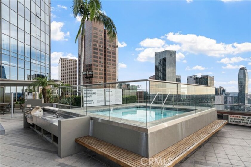 Included in the sale are four adjacent assigned parking spaces within the building! Perched on the 26th floor, this luxurious 1-bedroom loft offers breathtaking views of Downtown Los Angeles. Located in the prestigious 1100 Wilshire building, the unit features a European-style kitchen with stainless steel appliances, white cabinets, granite countertops, and a gas range. The bedroom is elevated and comes with a spacious walk-in closet. Additional amenities include in-unit washer and dryer, hardwood flooring throughout, and carpet in the bedroom. 1100 Wilshire provides an exceptional living experience with 24-hour security and concierge services, a fitness center, media room, and conference room. On the 17th floor, the Sky Deck boasts a heated infinity pool, spa, cabanas, lounge chairs, fire pit, and BBQ grill. This prime location offers easy access to Crypto.com Arena, LA Live, Regal Theaters, The Bloc, Ralph's, Starbucks, Target, Whole Foods, MOCA, Walt Disney Concert Hall, and a variety of Downtown dining and entertainment options. There are two (2) common-area potty areas for dogs. Amazon lockers on the 1st floor, and a self-checkout mini mart. Please note that the loft’s bedroom is not enclosed.