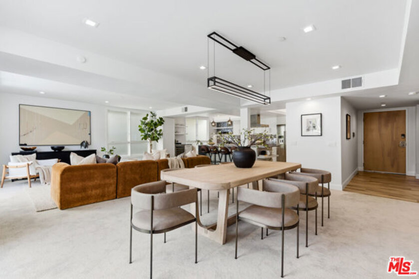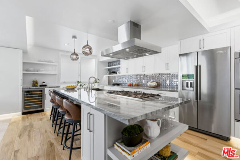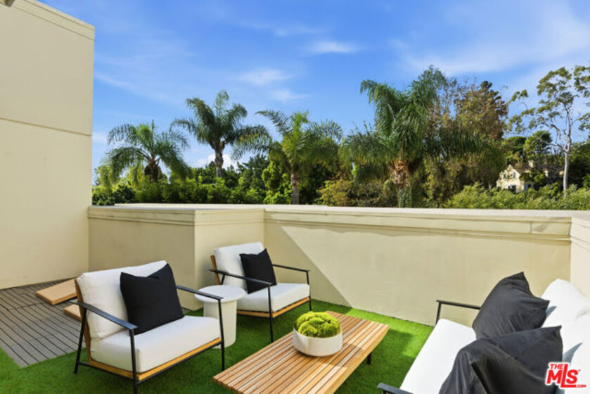 Ideally situated in Westwood, this exceptional two-story penthouse residence spans 1,938 square feet of beautifully re-imagined living, offering expansive interiors, an airy open feel, and serene tree-lined views from three private balconies. Thoughtfully remodeled with a refined, contemporary aesthetic, the home features two spacious en-suite bedrooms and 2.5 impeccably appointed baths, creating a seamless blend of comfort, privacy, and sophisticated design.Filled with natural light, the open-concept living and dining spaces flow seamlessly into a beautifully expanded contemporary kitchen designed for both everyday living and effortless entertaining. Marble countertops and custom cabinetry create a clean, tailored aesthetic, while integrated appliances are thoughtfully concealed to maintain uninterrupted surfaces and a refined architectural feel. A premium Thermador cooktop anchors the space, complemented by abundant storage and streamlined finishes that keep the kitchen both functional and visually striking. Just beyond, a large in-unit washer and dryer adds everyday convenience without compromising the home's elevated design. Electronic remote-controlled window coverings enhance ease and comfort throughout, while three expansive private balconies invite seamless indoor-outdoor living and capture tranquil treetop surroundings.The primary suite serves as a serene retreat, highlighted by a spa-inspired bath with heated floors, a separate soaking tub, and a glass-enclosed shower. The second en-suite bedroom features spacious proportions, ample closet space, and its own private bath, continuing the home's sense of comfort and privacy. An additional powder room is ideally positioned for visitors. A bonus alcove with large built-in shelves can be used as an office. ADT alarm readiness provides added peace of mind. Located within an intimate and quiet 17-unit building, this exceptional penthouse offers both exclusivity and accessibility just moments from UCLA, Beverly Hills, and Santa Monica. A rare opportunity to experience elevated Westwood living in a beautifully re-imagined contemporary home.