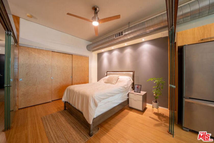 Amazing price! Tax value assessed at $718,373! Seize the opportunity before someone else does. Experience urban sophistication in this stunning 1,100 sq ft soft-loft residence at the LEED-Certified "Elleven" Building in Southpark, super low electric bill ($25/m). This spacious west-facing home showcases over $45,000 in designer upgrades, including beautiful bamboo flooring, custom six-foot smoked-glass sliding panels with a sleek stainless-steel header and solid-wood framing providing an elegant sense of bedroom privacy while maintaining an open, airy flow. Also included is a dedicated EV charger ($3500 value). The wall-to-wall windows fill the space with natural light and offer tranquil treetop views accompanied by the soothing sounds of the community's water feature below. The modern kitchen features stainless-steel appliances, granite countertops, and a stainless mosaic backsplash, perfect for both cooking and entertaining. Additional highlights include recessed lighting, a large laundry room with built-in storage, a custom closet organizer, and one assigned parking space conveniently located next to a private storage room, a rare and valuable amenity in DTLA living. Located in the vibrant South Park District, you're just steps away from LA Live, Crypto.com Arena (formerly Staples Center), Microsoft Theater, Ralphs, FIDM, and countless acclaimed restaurants, cafes, and lounges.