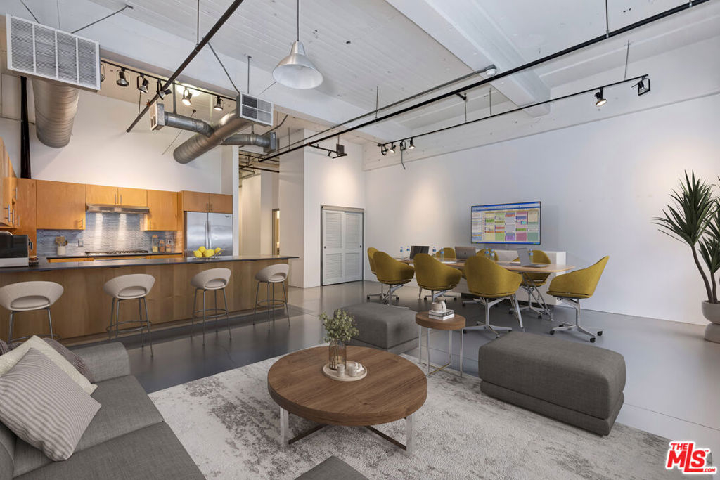Experience modern urban living in this authentic industrial live/work loft at the iconic Flower Street Lofts in Downtown LA's vibrant South Park.This open-concept residence features 14' exposed ceilings, expansive industrial windows, and polished concrete floors. The gourmet kitchen boasts newer stainless steel appliances, while the remodeled primary bath includes a stone-tiled shower, designer fixtures, and a sleek vanity. Additional highlights include a large walk-in closet, in-unit washer/dryer, guest powder room, and two reserved non-tandem parking spaces.Perfect for a home or creative workspace, the loft is pre-wired for high-speed internet and cable. Enjoy proximity to Pine & Crane, South Park Grocery & Pharmacy, OrangeTheory, Starbucks, Prank Bar, Hygge Bakery, and major attractions like Crypto.com Arena, LA Live, The Ritz-Carlton, and Whole Foods.