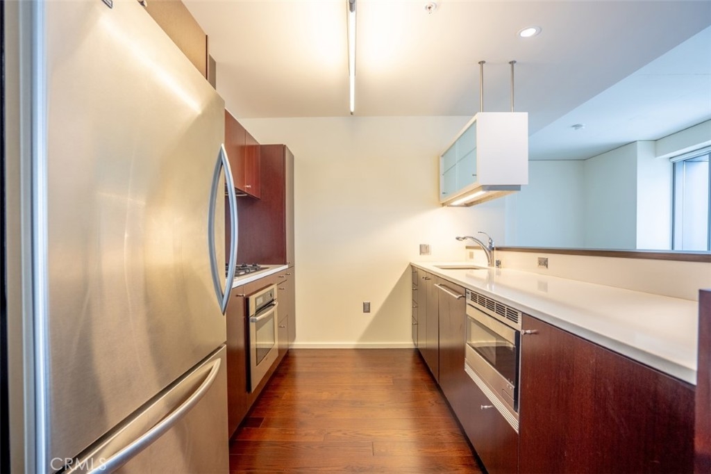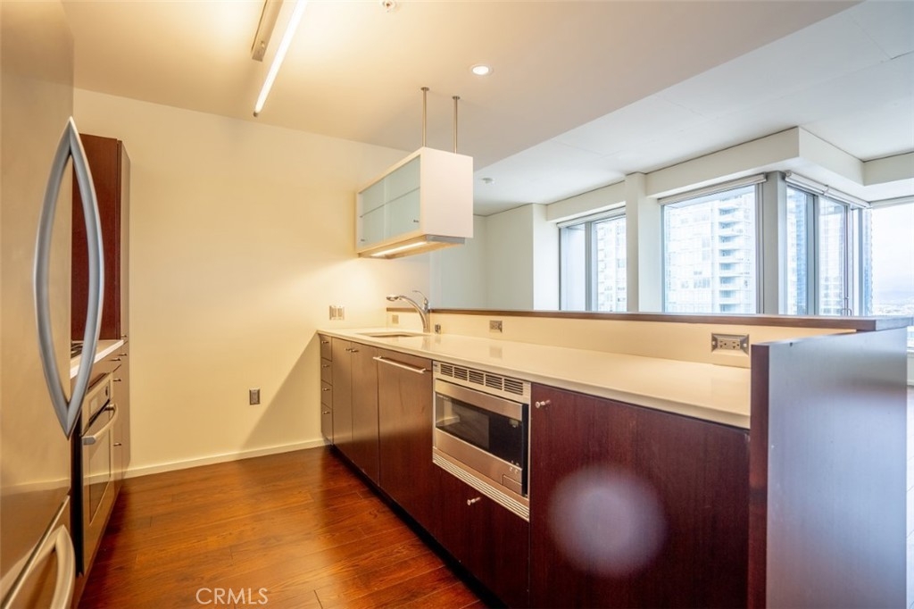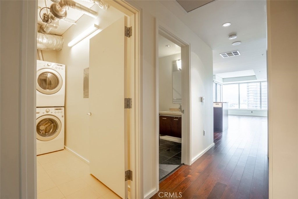 MUST SEE AMAZING VIEWS FROM THE 17TH FLOOR IN THE EVO BUILDING. Enjoy this spacious 1 bedroom versatile floor-plan, perfectly situated on the 17th floor facing West. Hardwood floors, stainless steel kitchen appliances, gorgeous Caesar stone counter tops in kitchen and bathroom, and washer/dryer in unit. Large separate laundry /storage room & convenient located 1 car secured underground parking space. Evo building built in 2008 offers resort style amenities in the heart of the most sought after urban communities in Downtown LA, South Park . Resort amenities include edgeless pool with impressive outdoor kitchens with TVs, rooftop fitness center & rooftop rec/lounge room with BREATHTAKING views of the DTLA skyline. Walking distance to EVERYTHING DTLA has to offer including LA LIVE, Staples Center & Whole Foods.