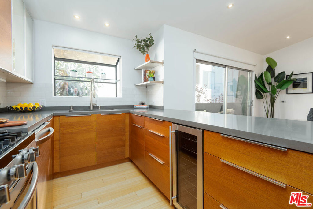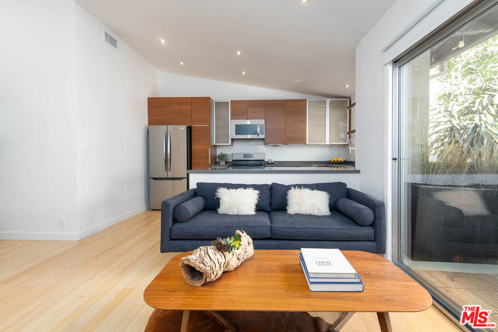 Fantastic Brentwood condo! This top floor 2 bedroom/2 bathroom condo is located in the heart of Brentwood. This unit which is flooded with natural light features a large open concept floor plan with a cook's kitchen, wood cabinetry, stainless steel appliances and gray quartz-like countertops. The unit also features vaulted ceilings, a newly refurbished bathroom, central heat and AC and a private patio. The complex features beautiful landscaping and a secured entry, in addition the HOA allows washer/dryers to be installed in the units. The unit is located close to all the best shops and restaurants that Brentwood has to offer. Live your best Brentwood life in this unit!!